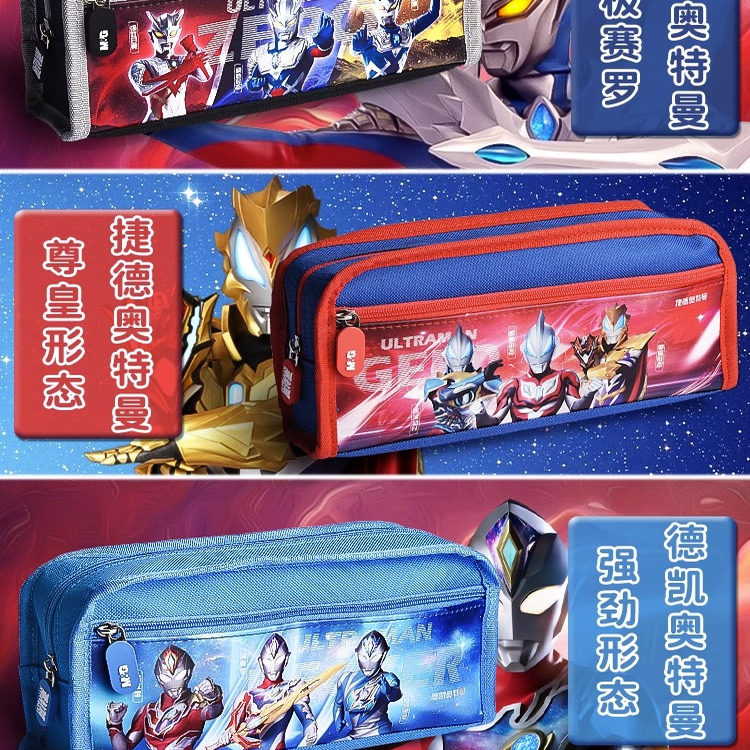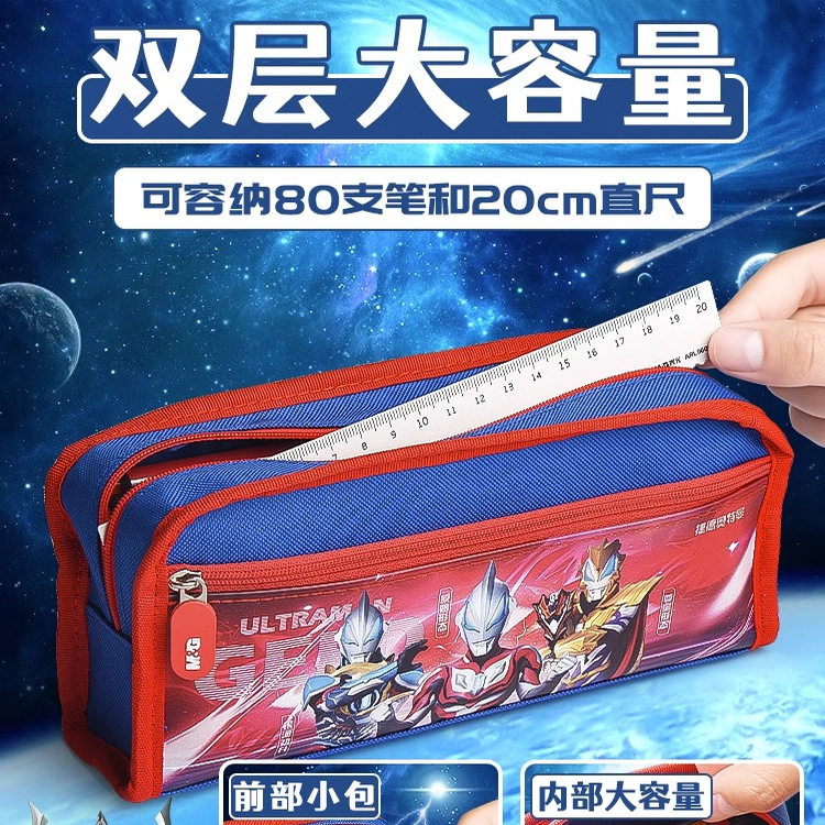 晨光奥特曼双层帆布笔袋男孩子小学生大容量文具盒男孩款铅笔盒铅笔袋男生文具袋笔盒男孩版初中生一年级笔袋