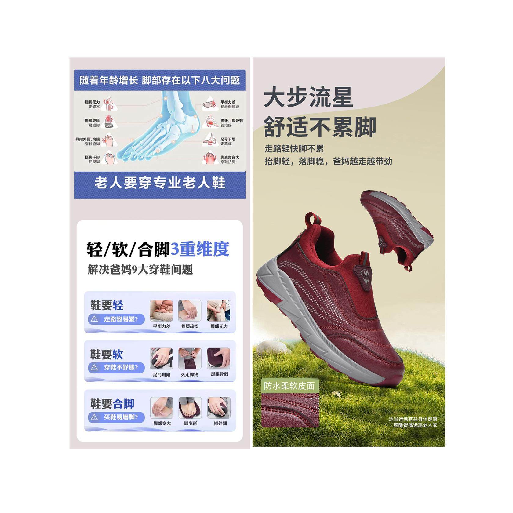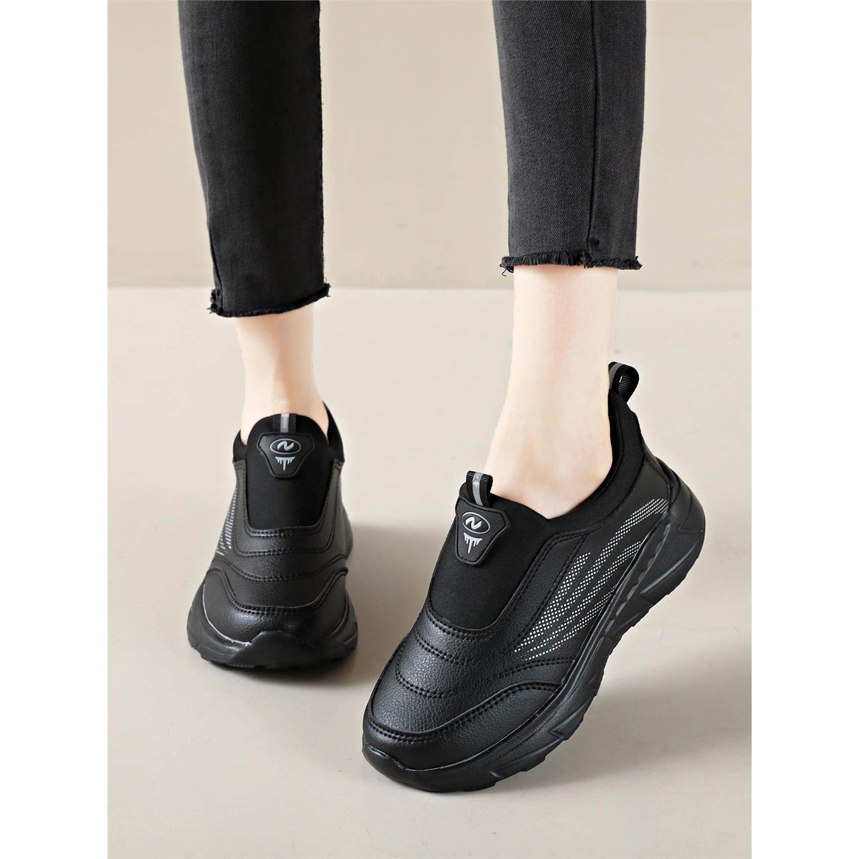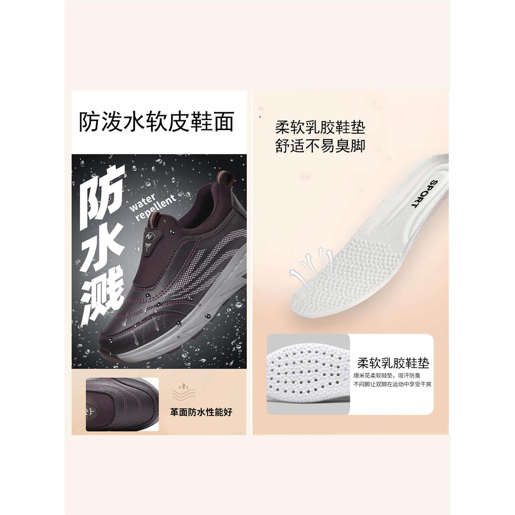 妈妈鞋秋季鞋子黑色上班工作久站不累脚防水防滑软底皮面运动鞋女