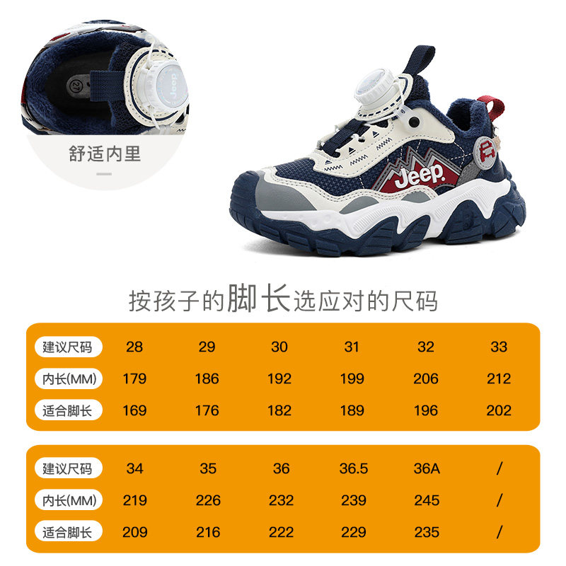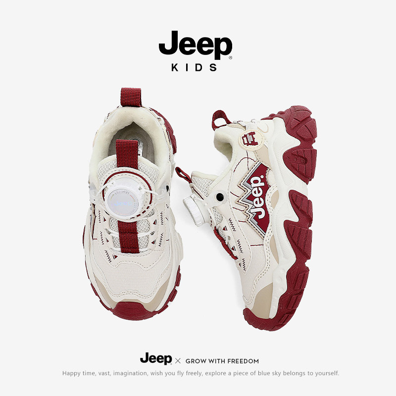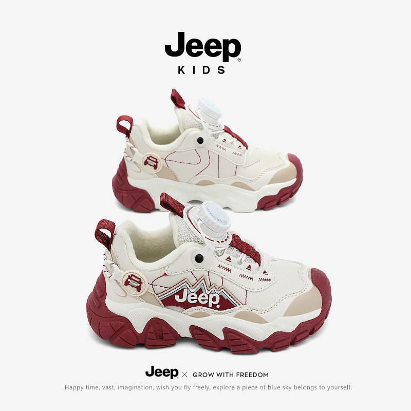 jeep童鞋女童冬季加绒保暖儿童二棉运动鞋红色新年男童防滑跑步鞋