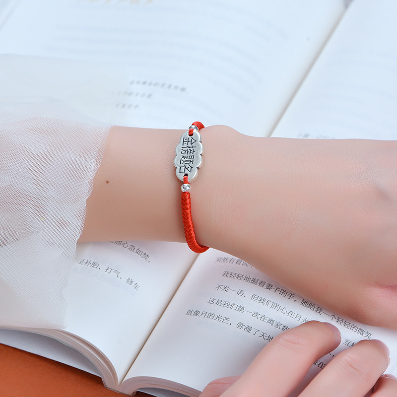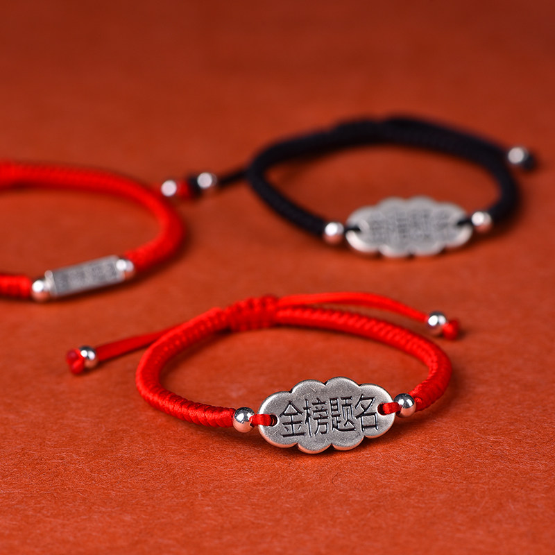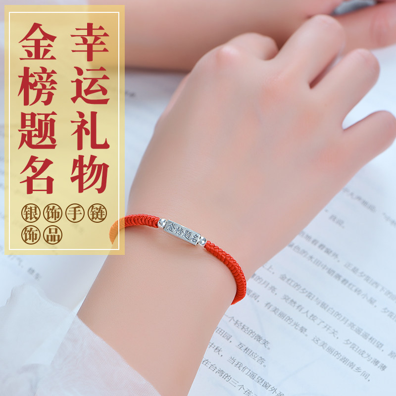 纯银金榜题名手链逢考必过幸运符手绳中考高考红绳好运饰品小礼物