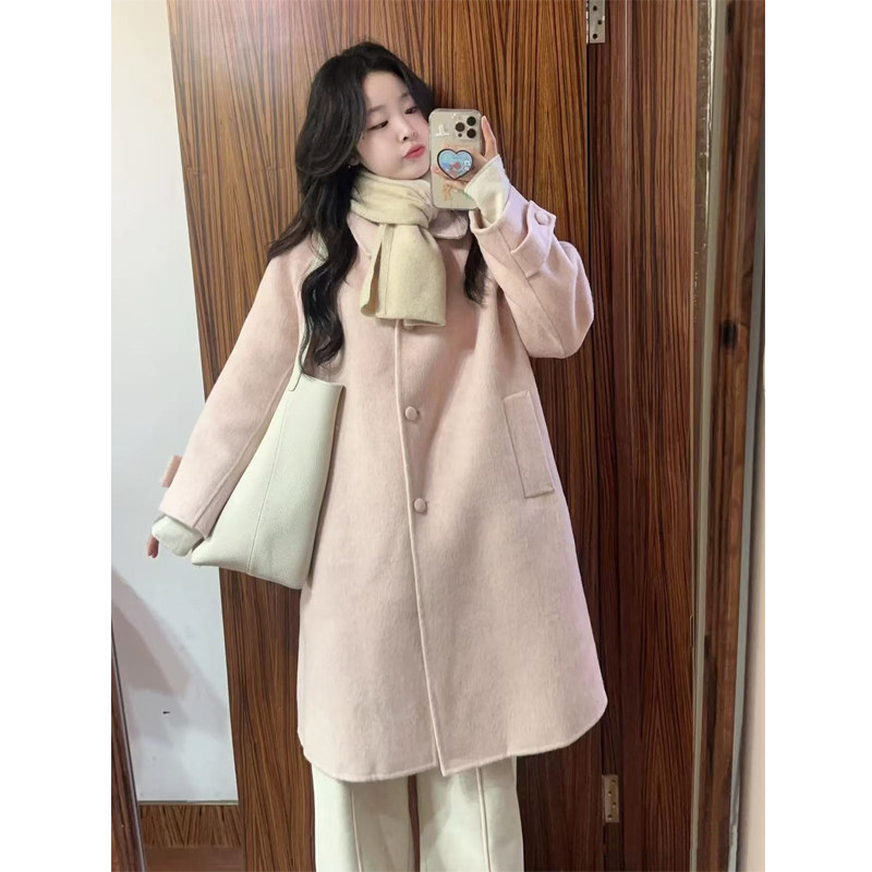 白色呢子大衣女2024新款秋冬高级感毛呢外套韩系小个子中长款气质