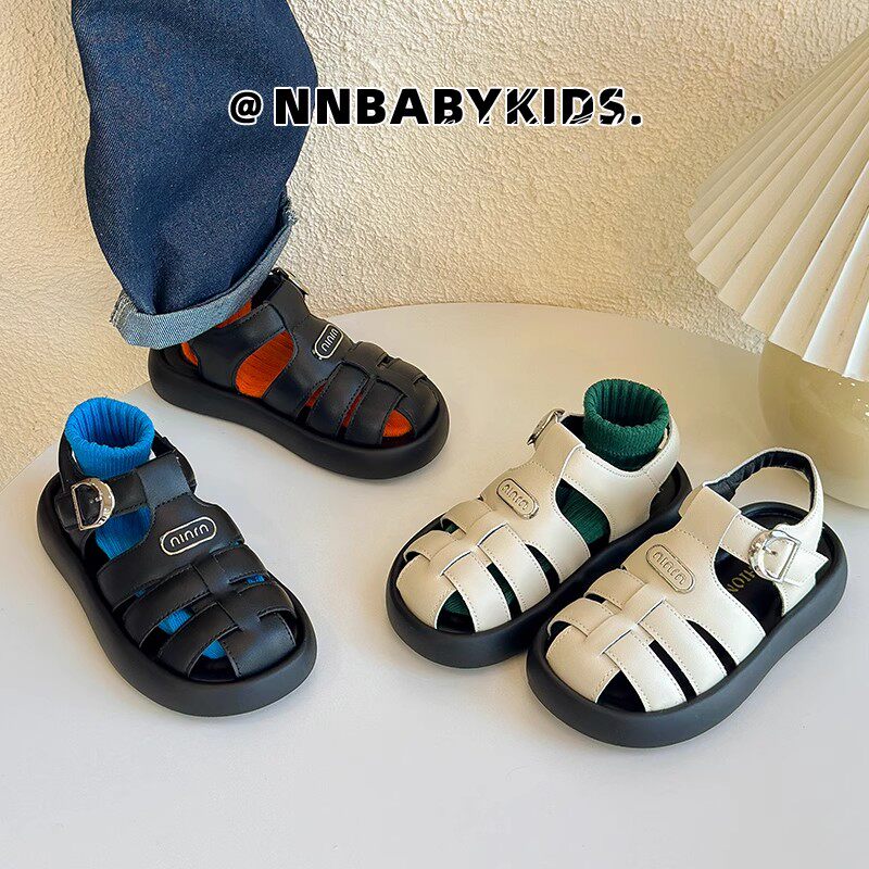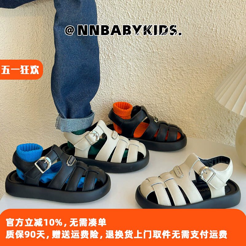 2026儿童头层牛皮男童包头凉鞋镂空编织软底软面真皮罗马女孩鞋子