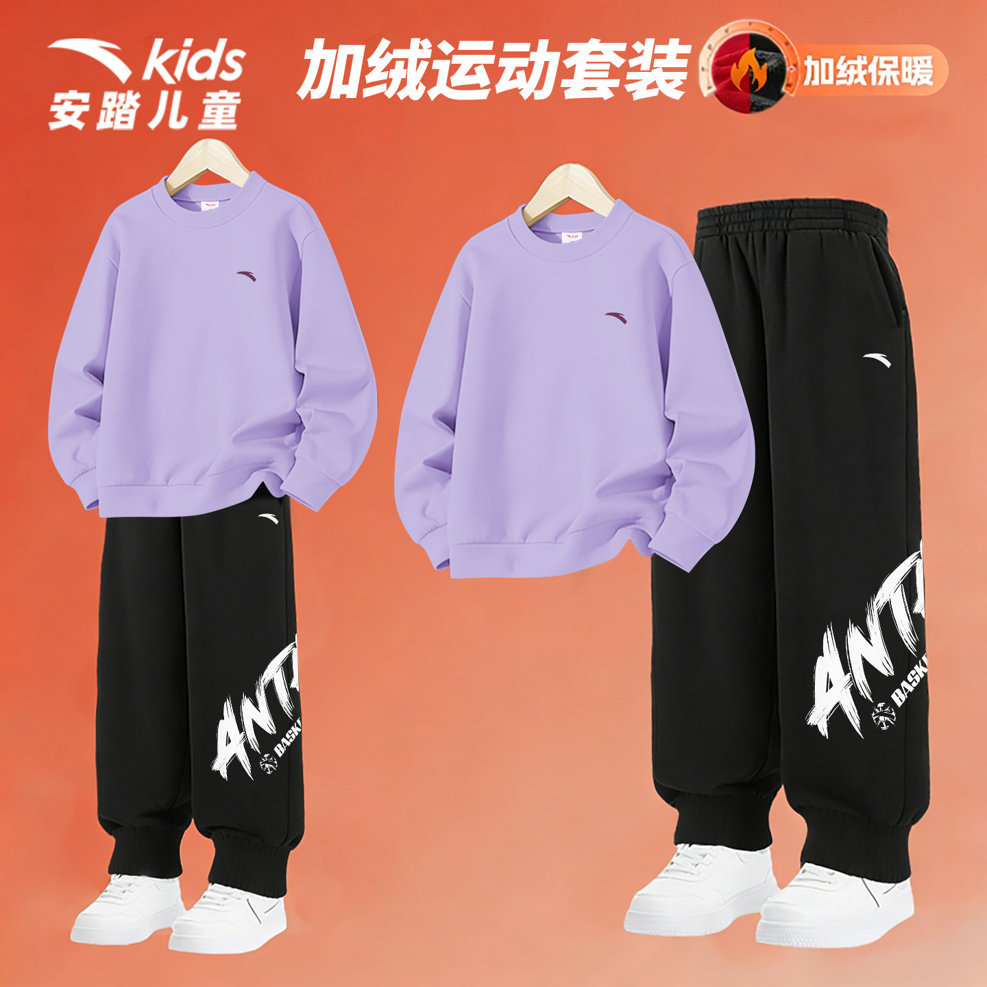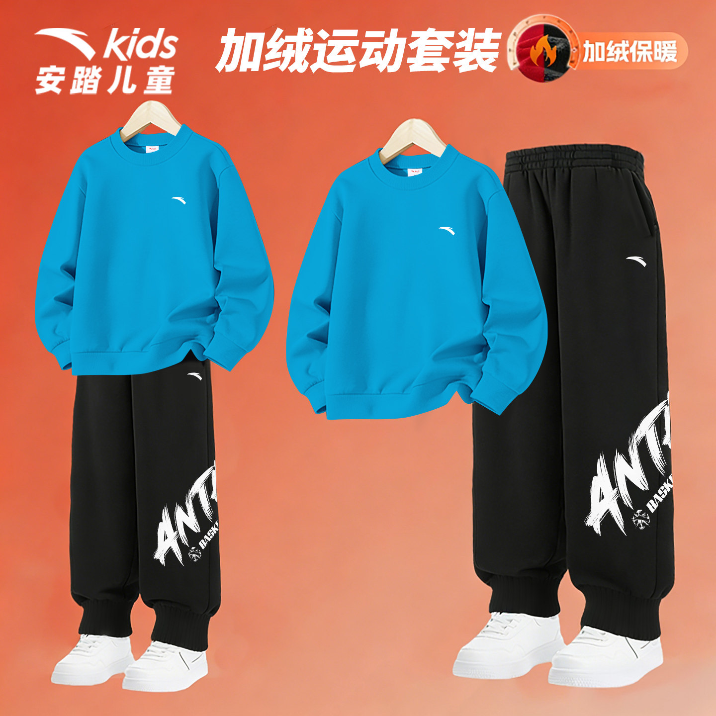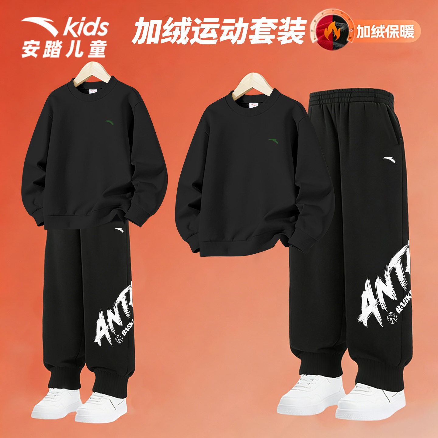 安踏童装儿童运动套装男秋冬季加绒加厚保暖跑步休闲一套卫衣卫裤