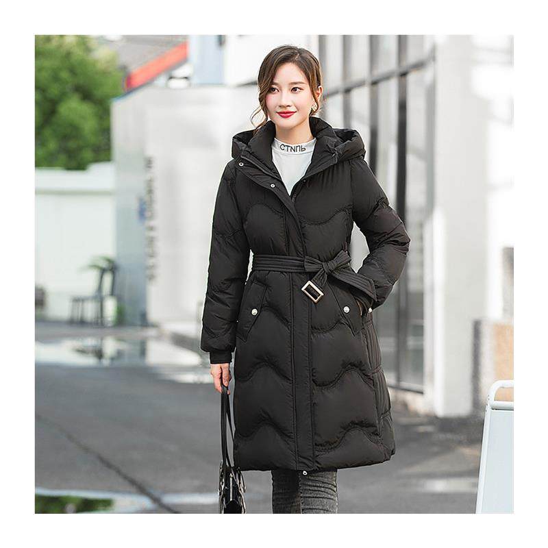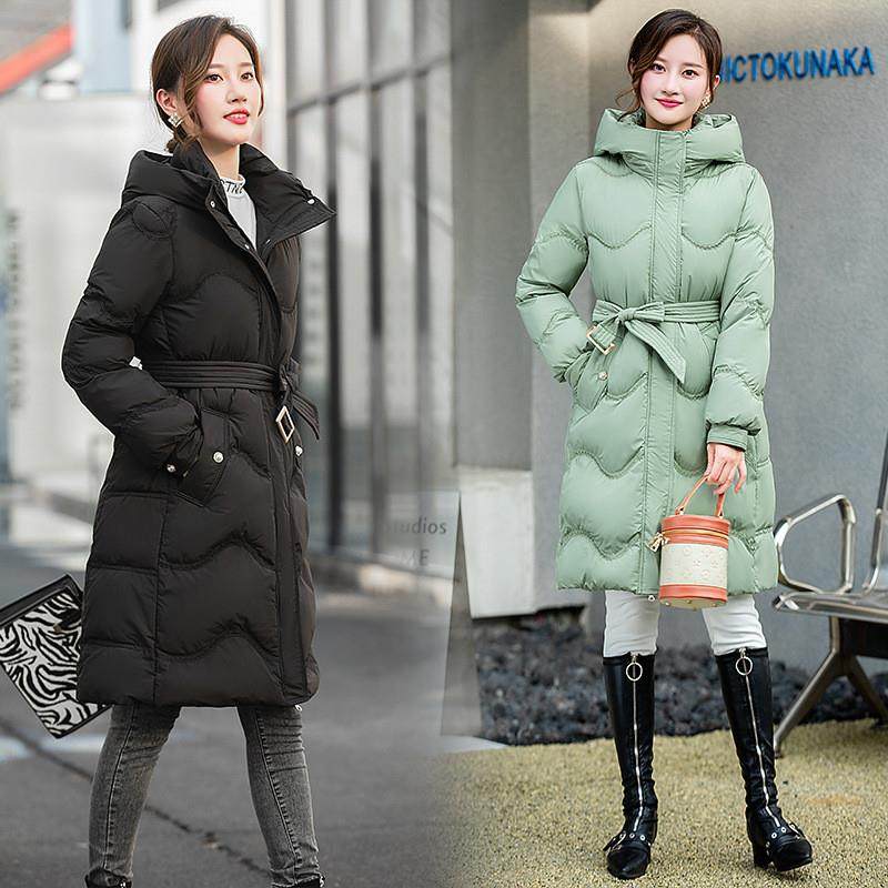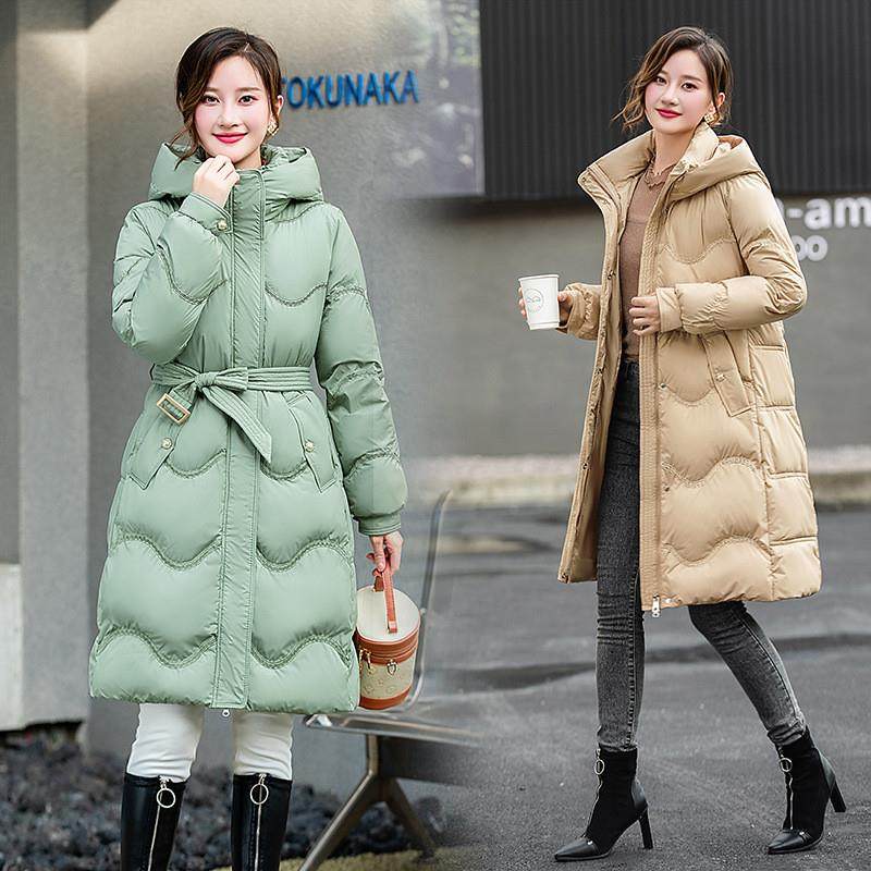 时髦气质棉衣女中长款冬季新款羽绒棉服长袖过膝宽松收腰棉袄潮