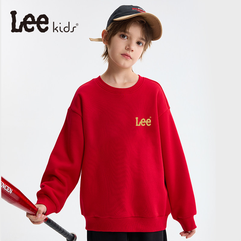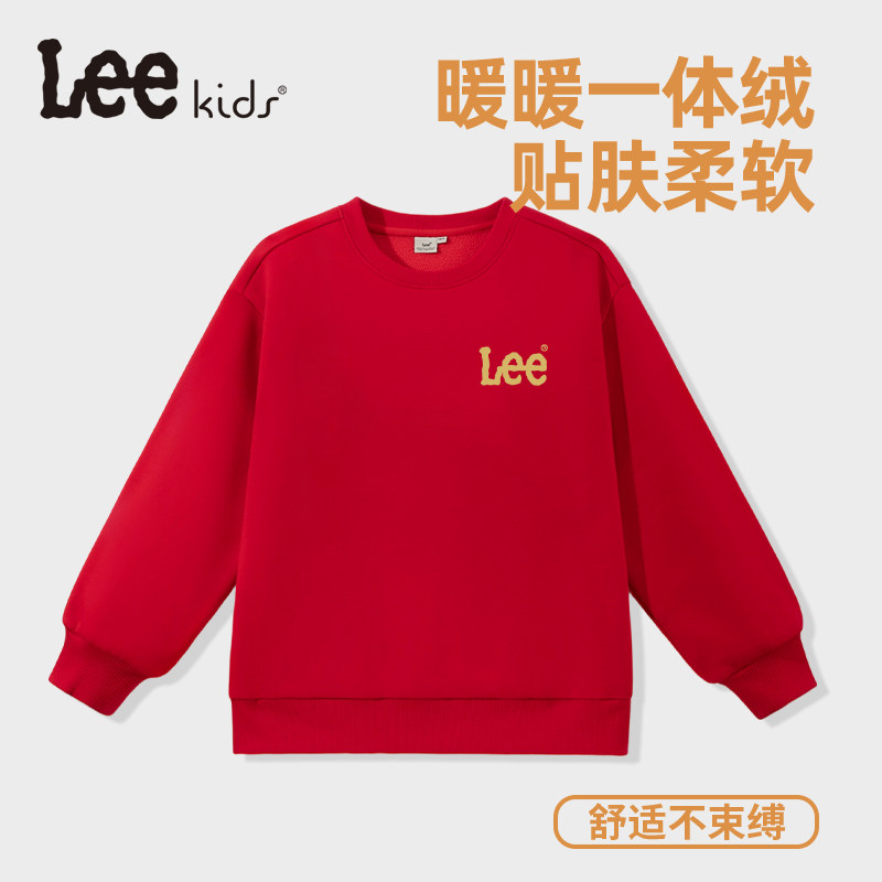 LeeKids童装男童红色本命年衣服中大童冬季加绒保暖上衣儿童卫衣