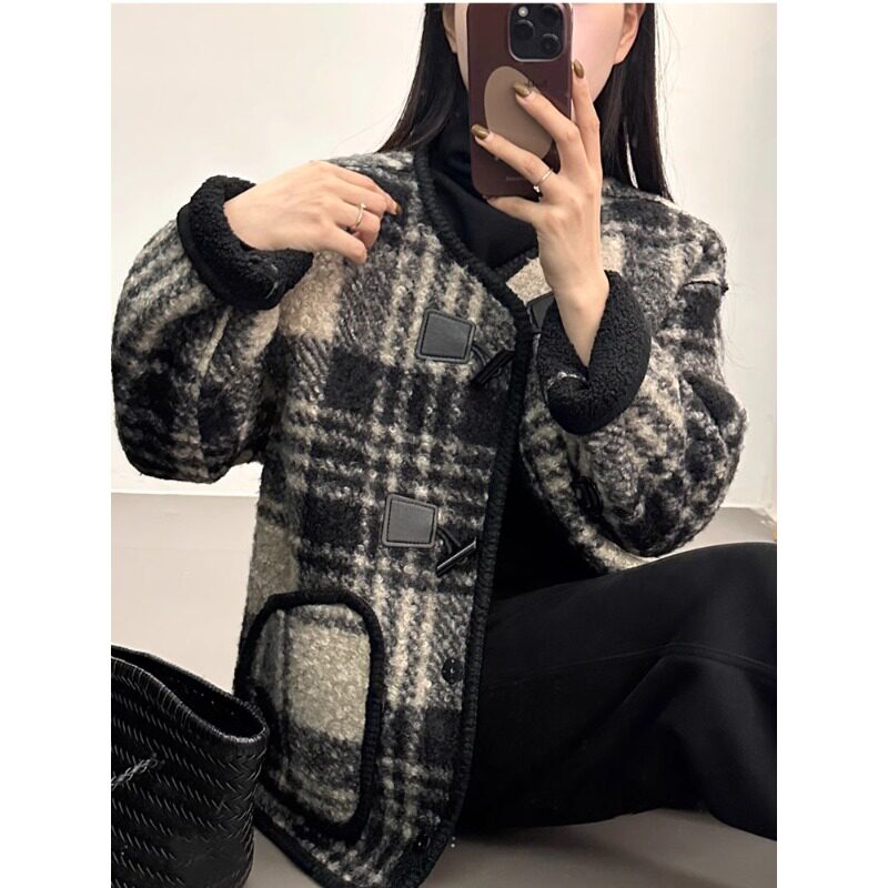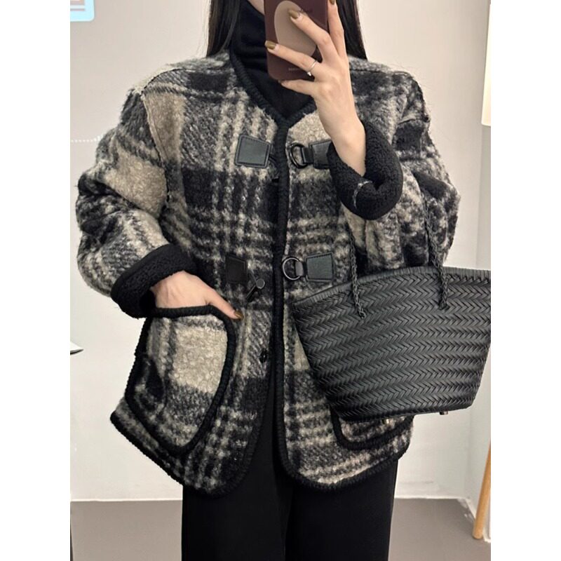 小香风毛呢外套女冬季加厚新款2025爆款韩版加绒小个子高级感上衣