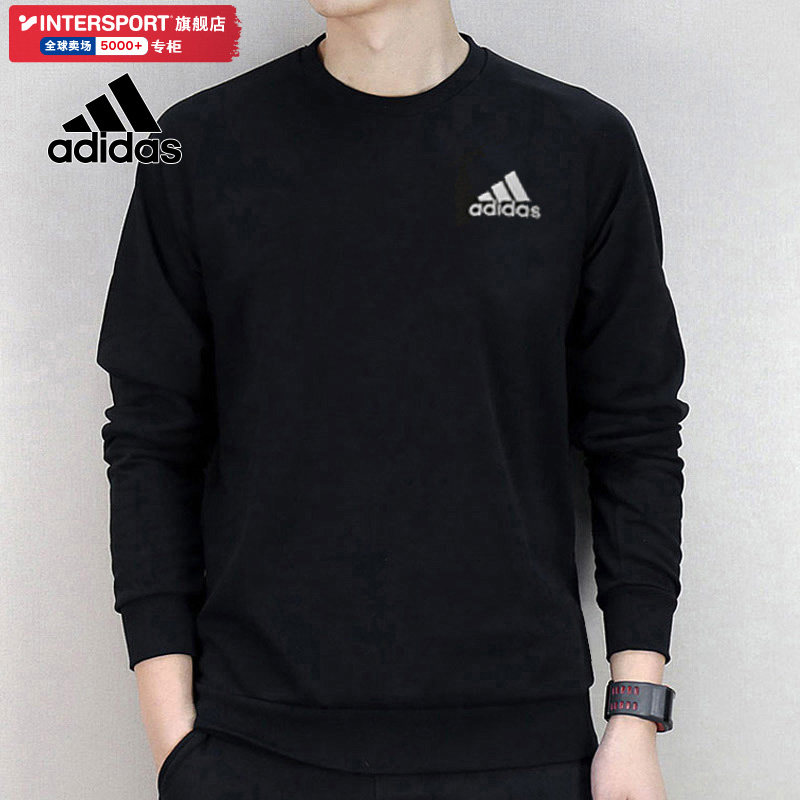 阿迪达斯卫衣男款冬季新款黑色运动上衣男士加绒圆领套头衫GK9094