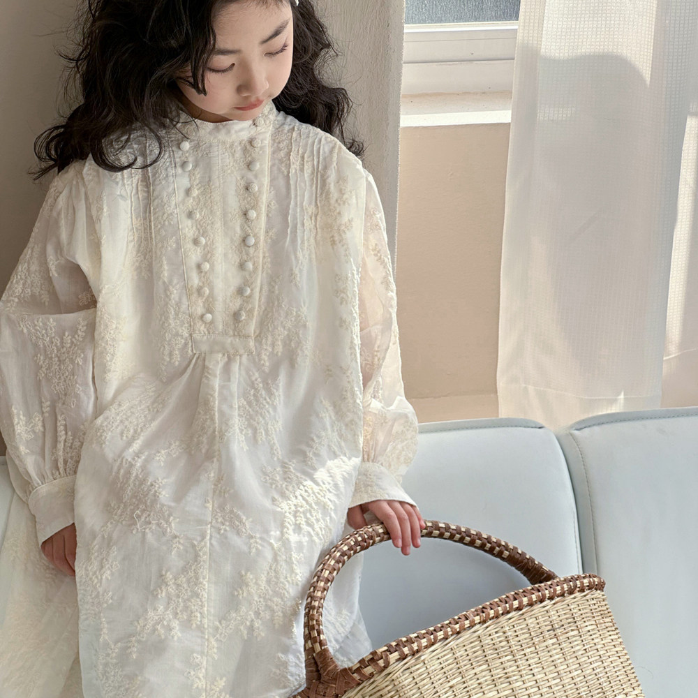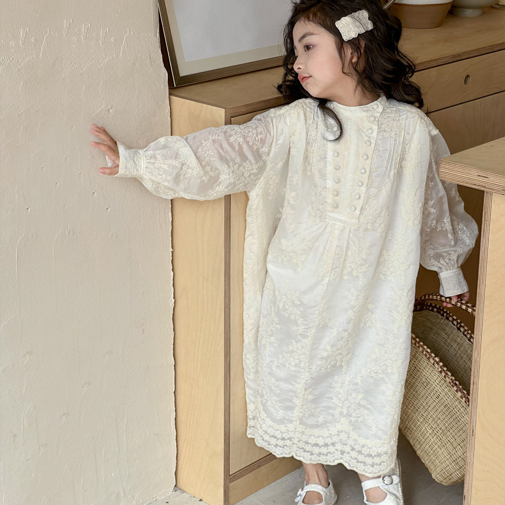 女童连衣裙2026新款春夏儿童长袖裙子新中式薄款蕾丝中大童公主裙