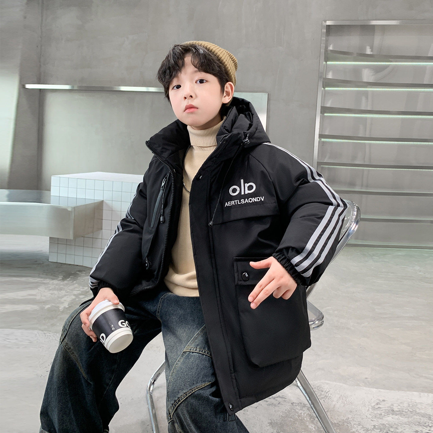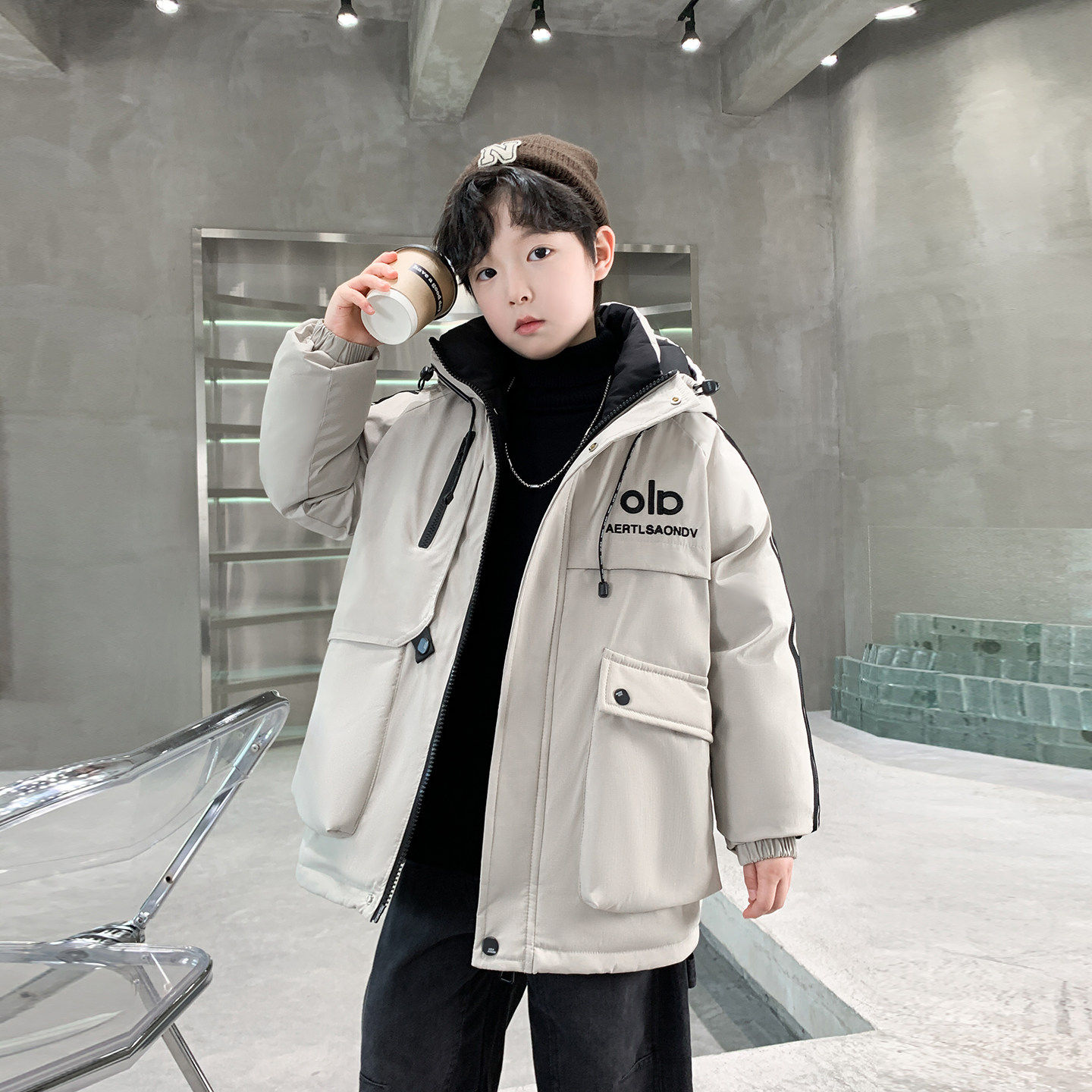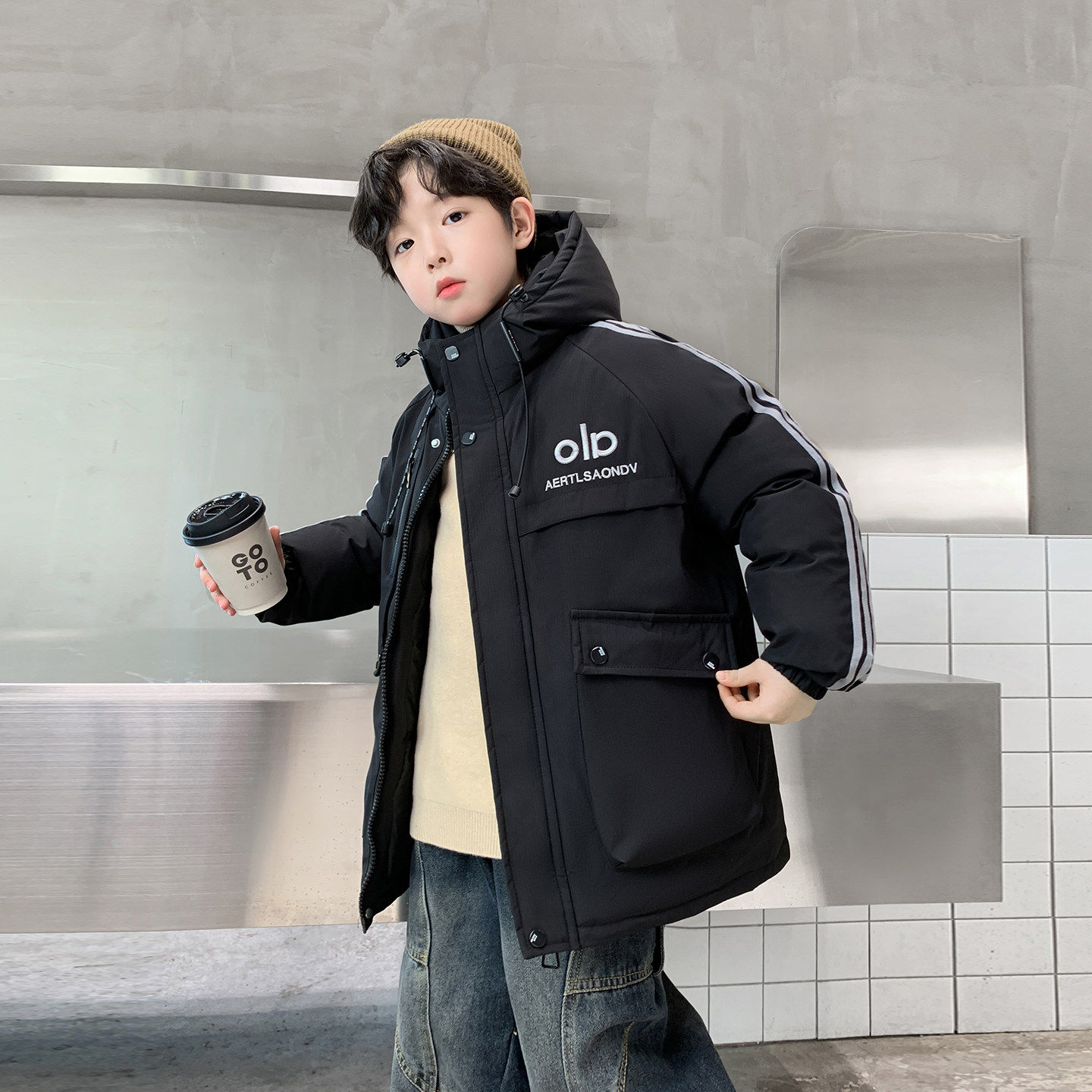 男生羽绒棉服2025新款青少年男童加绒棉衣棉袄初中生冬季加厚外套