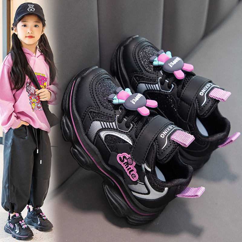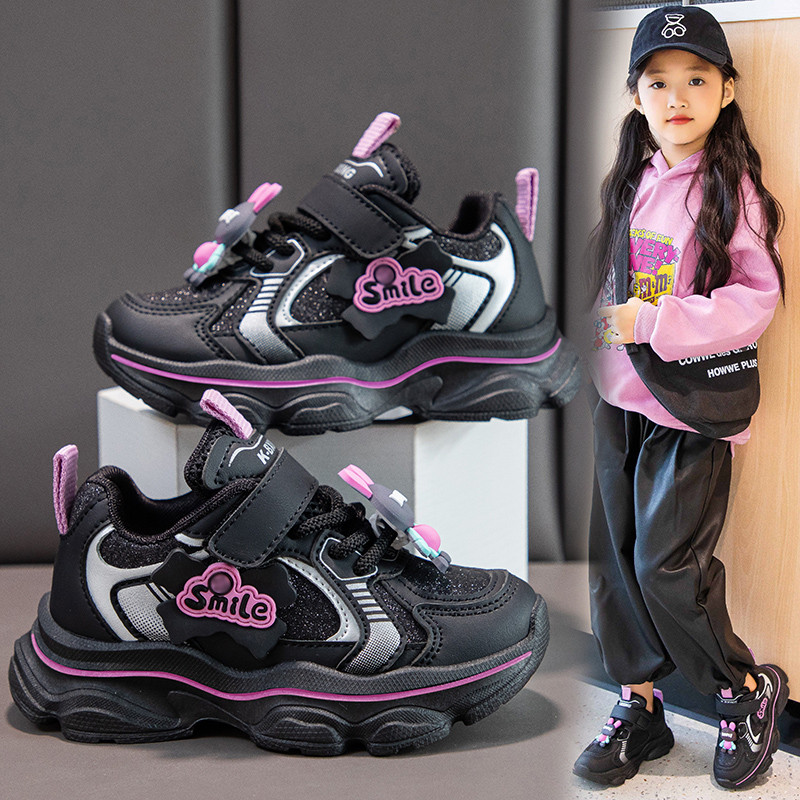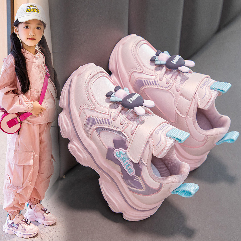 巴布豆女童冬季运动鞋中大防滑儿童老爹鞋2024年新款春秋女孩网鞋