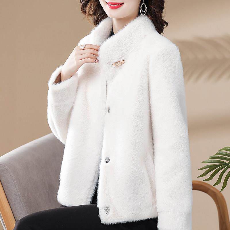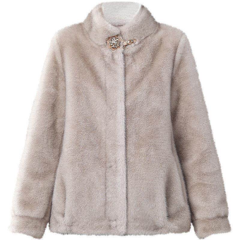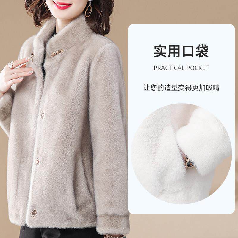 小个子妈妈秋冬装皮草外套时尚中老年女士新款水貂绒皮毛一体大衣