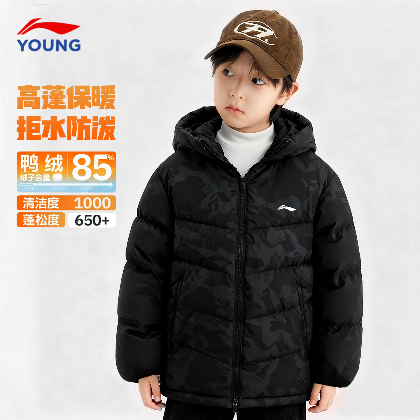 311线报网描述:李宁儿童羽绒服男款鸭绒85%冬季官方正品