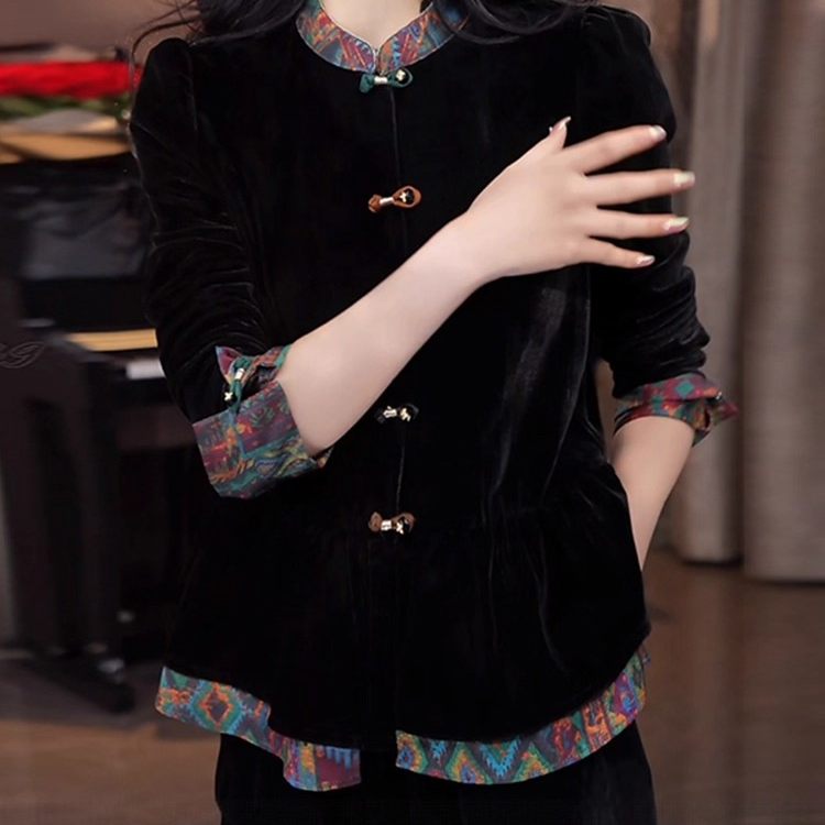 新中式国风丝绒外套女2026新款春秋盘扣上衣中老年妈妈装开衫外套
