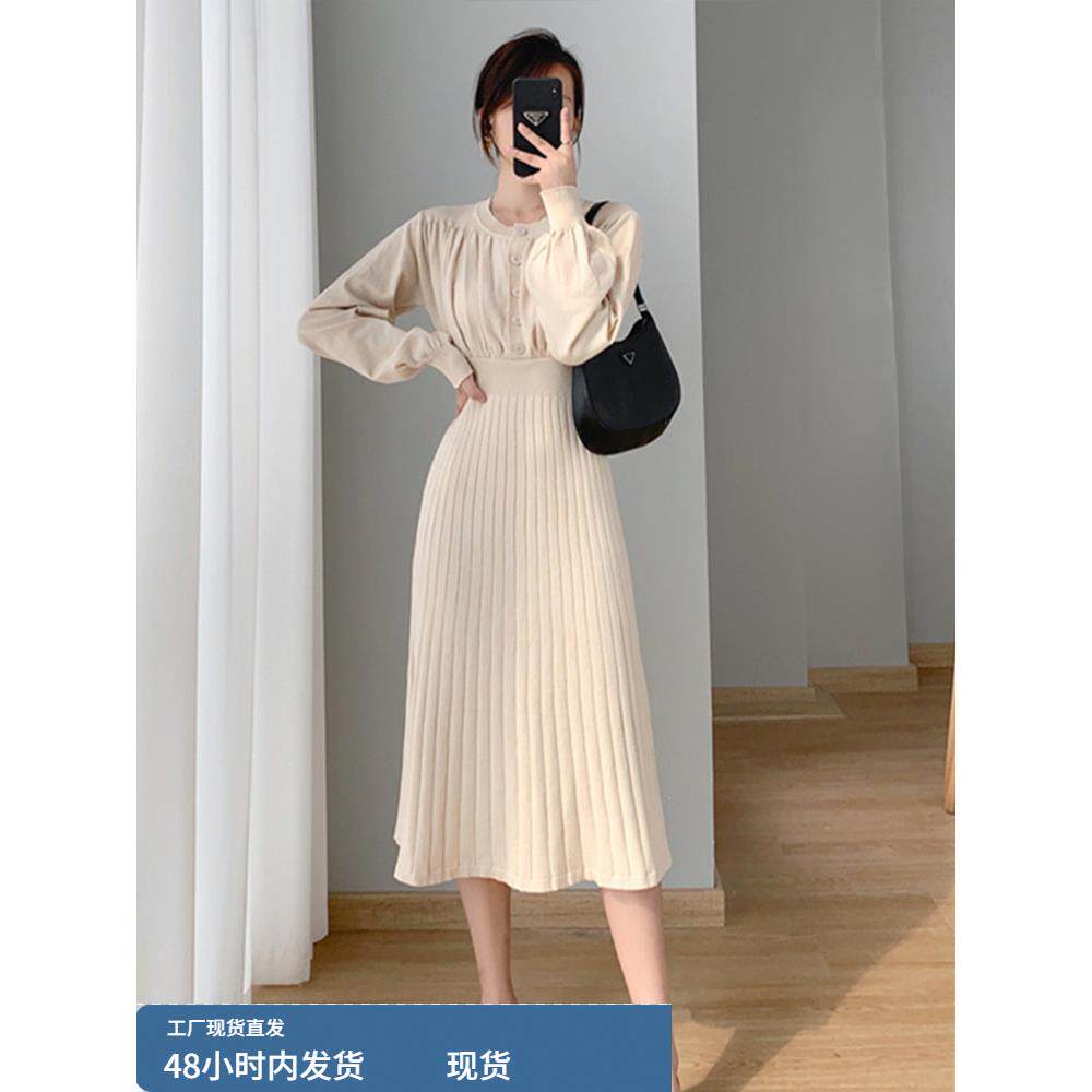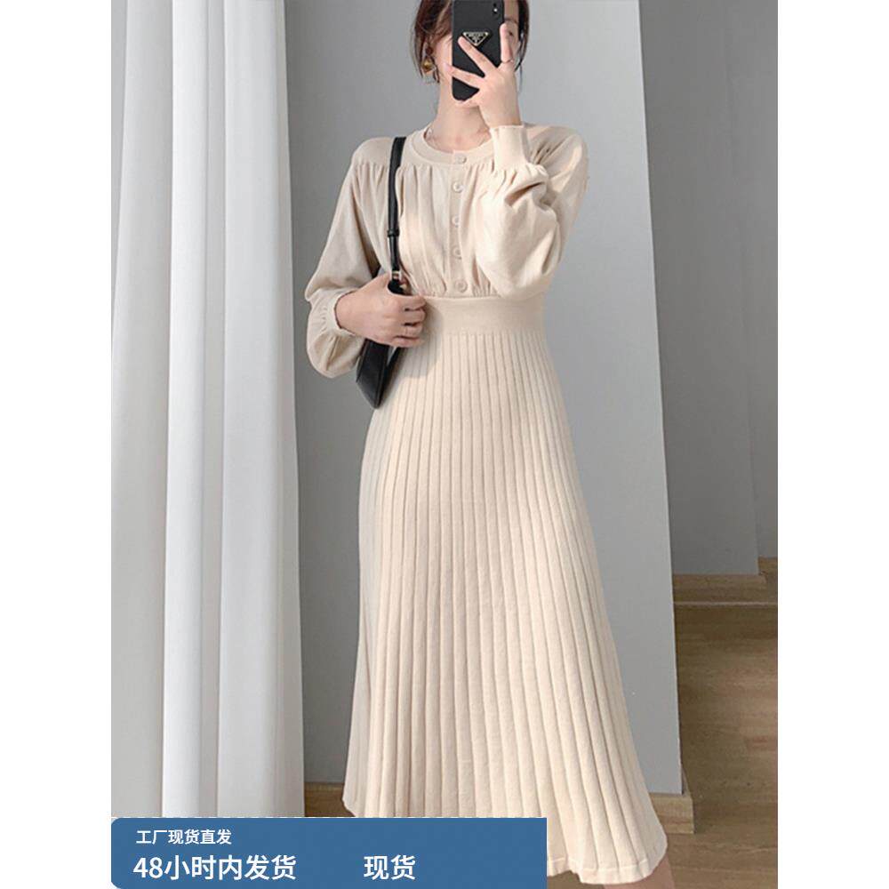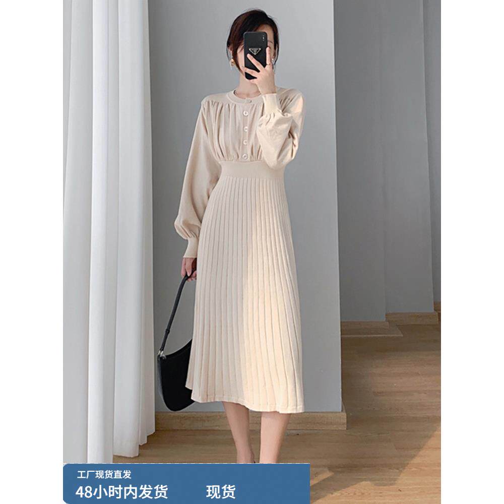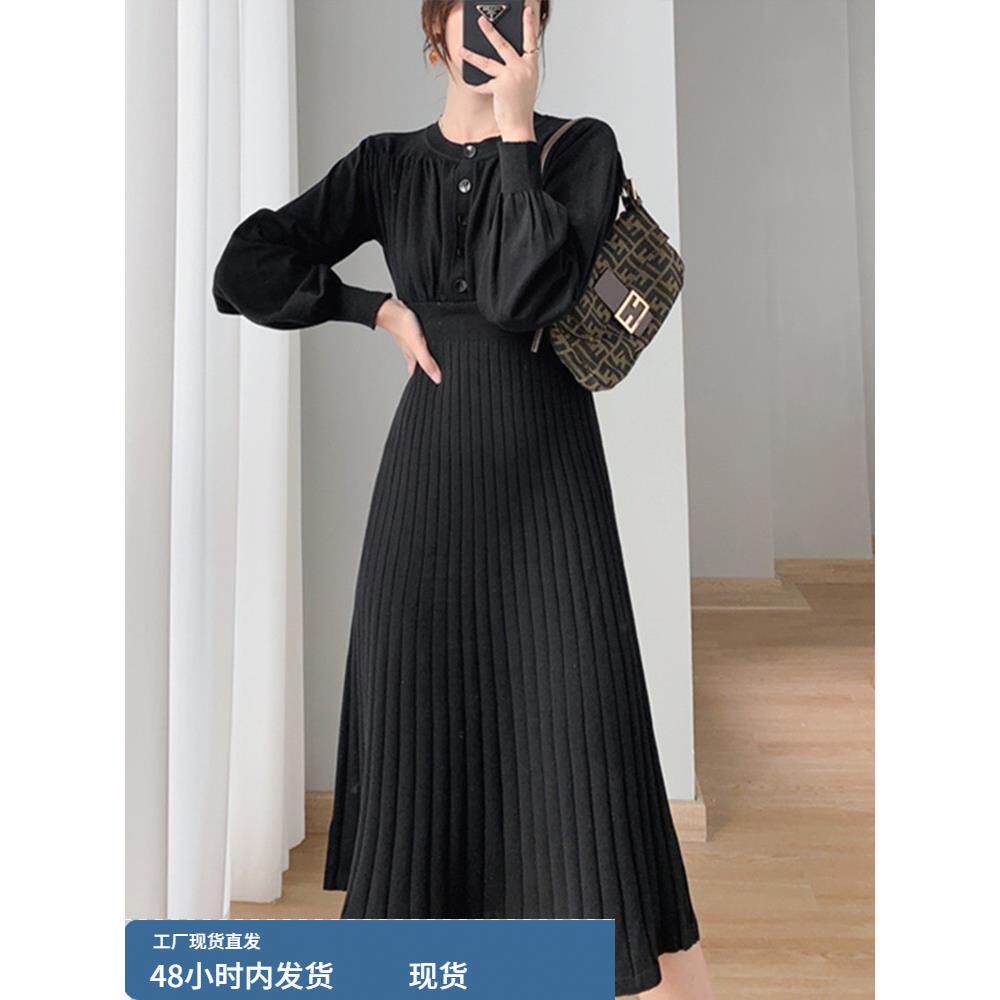 轻奢高级感连衣裙针织裙子女秋冬2025新款显瘦收腰长款紫色毛衣裙