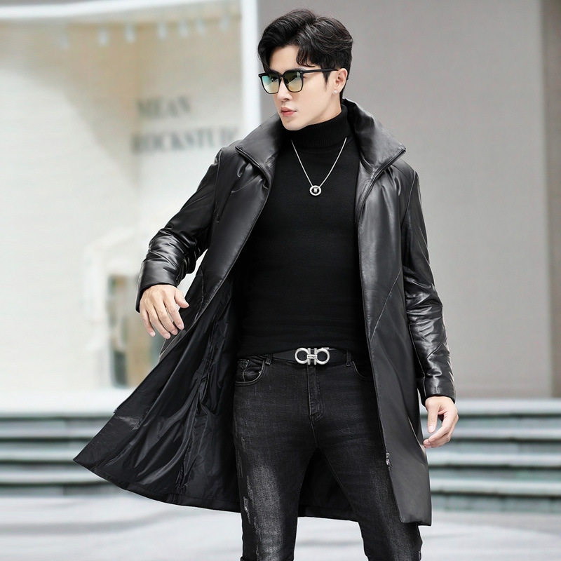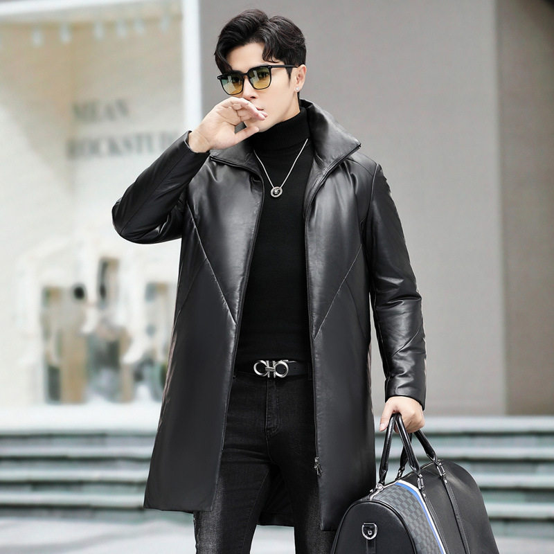 真皮羽绒服男士皮衣中长款过膝海宁绵羊皮大衣加绒加厚冬季外套