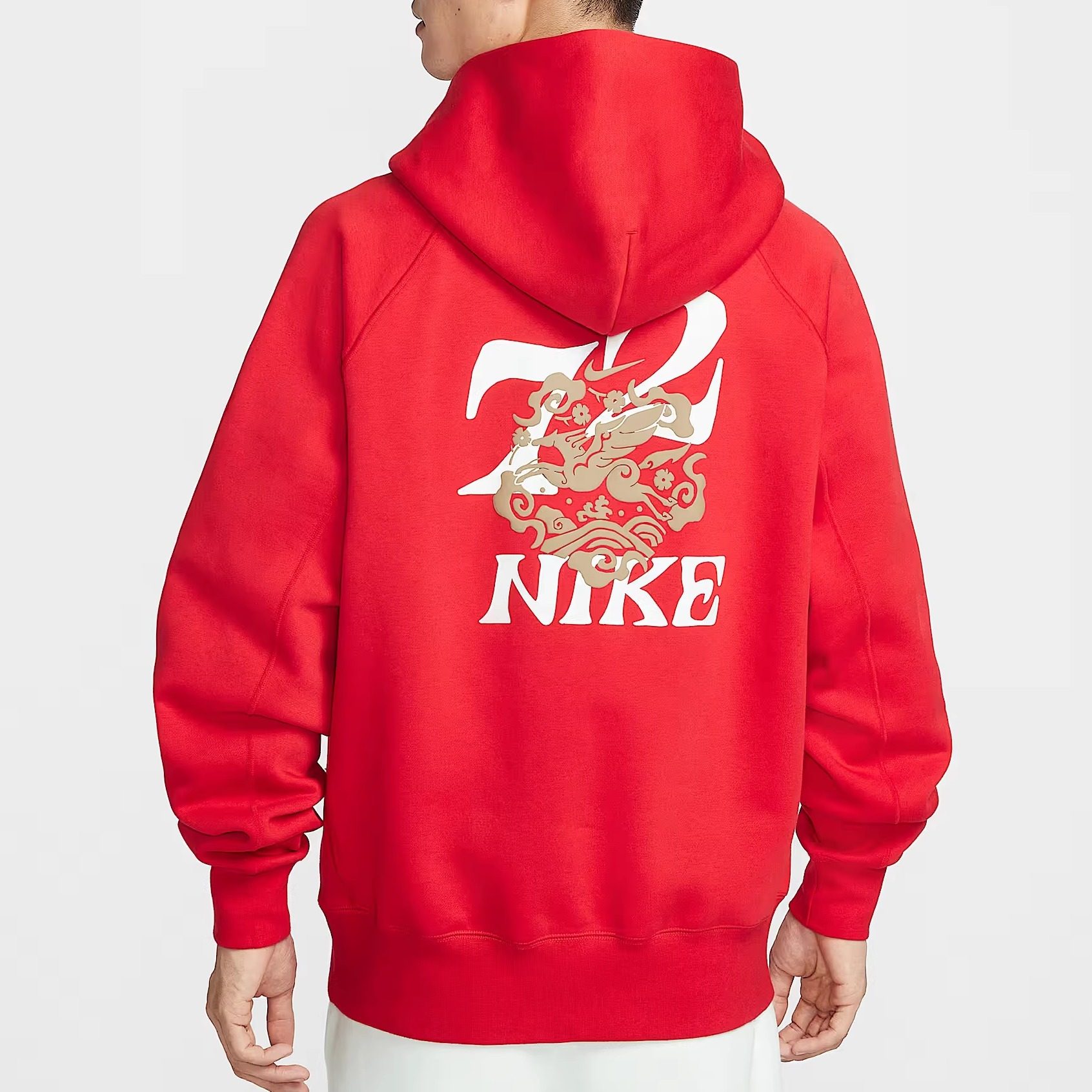 耐克红色卫衣男士加绒马年限定款男款运动连帽本命年新年鸿运穿搭