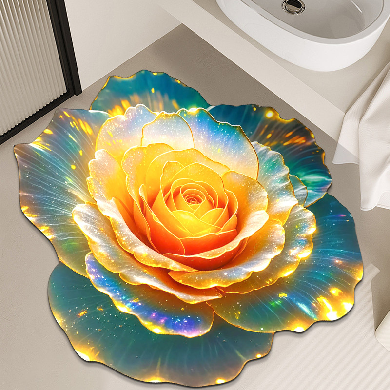 客厅3D立体牡丹花朵浴室地垫卫生间门口吸水防滑硅藻泥地毯脚垫子
