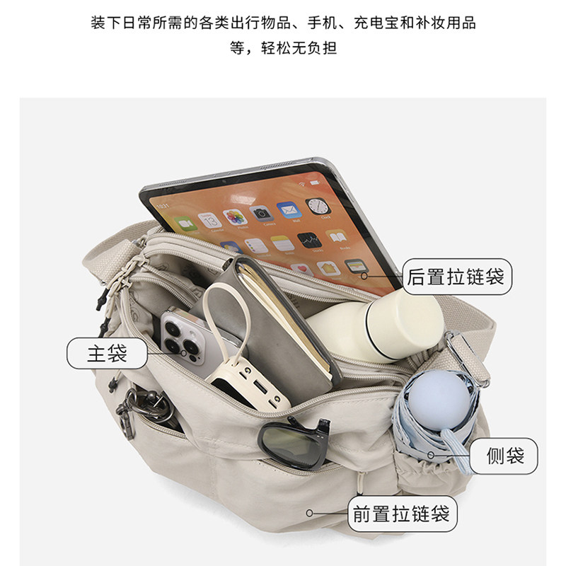 大容量斜挎包女式新款上班通勤单肩包轻便旅行帆布挎包多层流浪包
