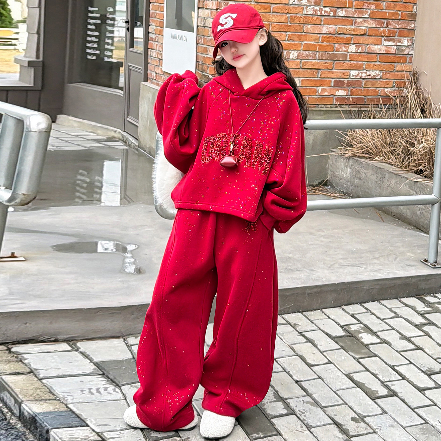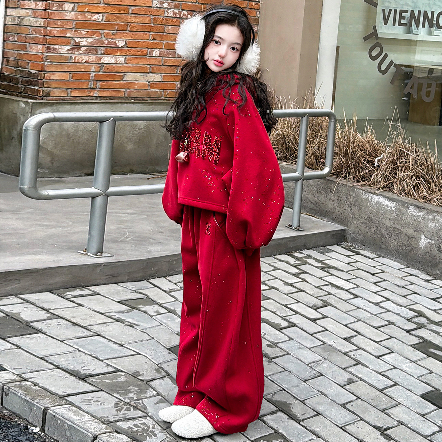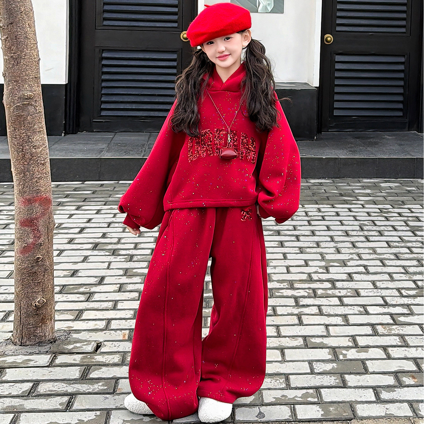 女童加绒加厚套装冬装2026新款12岁女孩红色本命年衣服儿童过年服