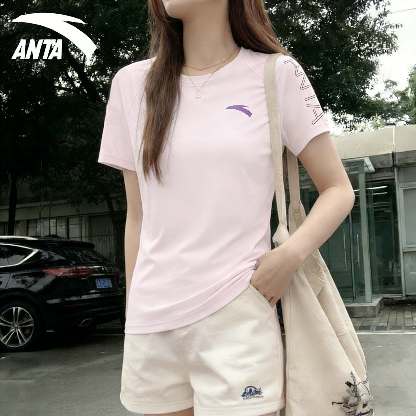 安踏女款短袖2026新款t恤显瘦圆领亲肤运动冰丝速干收腰健身上衣