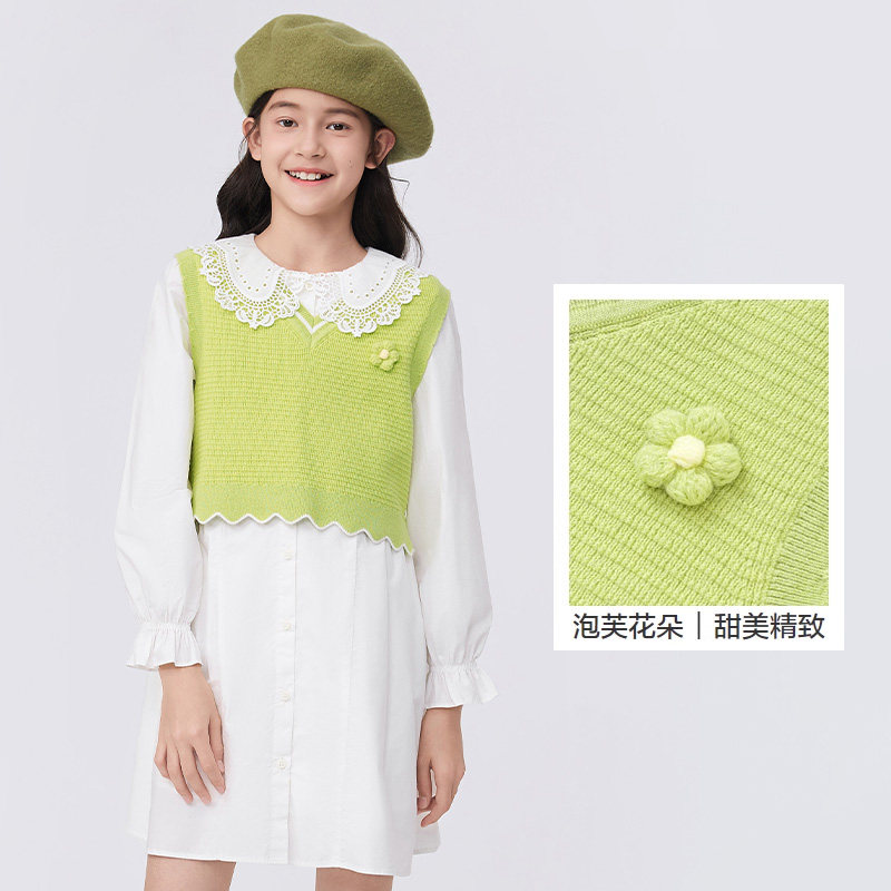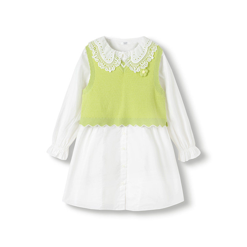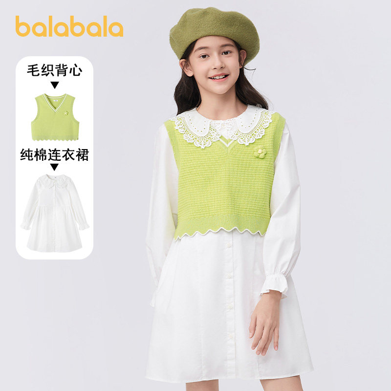 巴拉巴拉女童连衣裙中大童长袖套装儿童白色时尚裙子春装新款童装