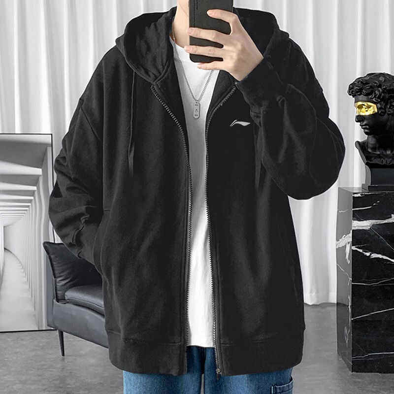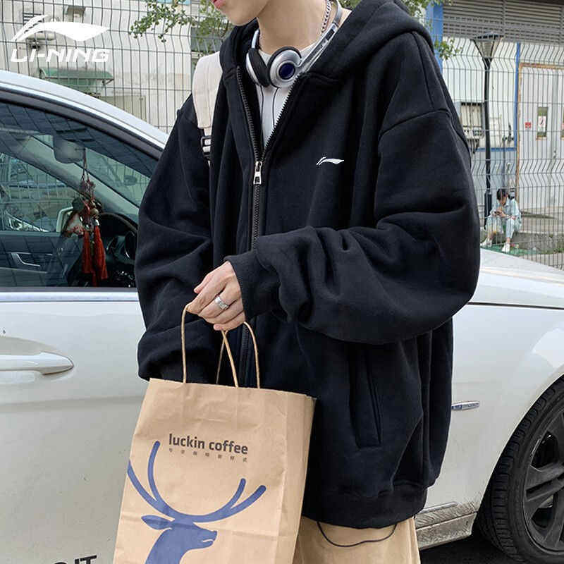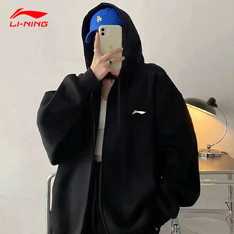 李宁卫衣外套男女款情侣装2026春季黑色连帽开衫大码运动休闲长袖