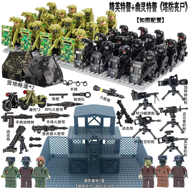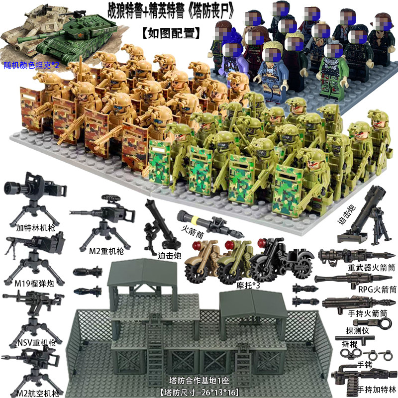 特种兵军事积木人仔特警丧尸战狼士兵哨塔乐高拼装益智玩具男孩子