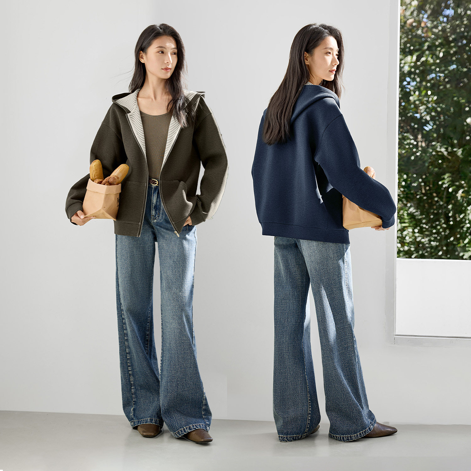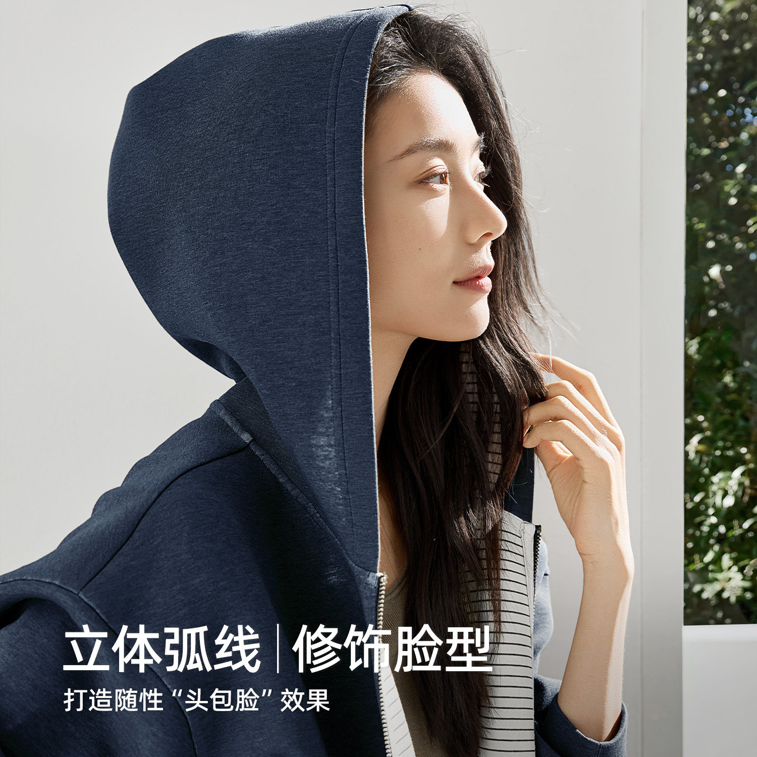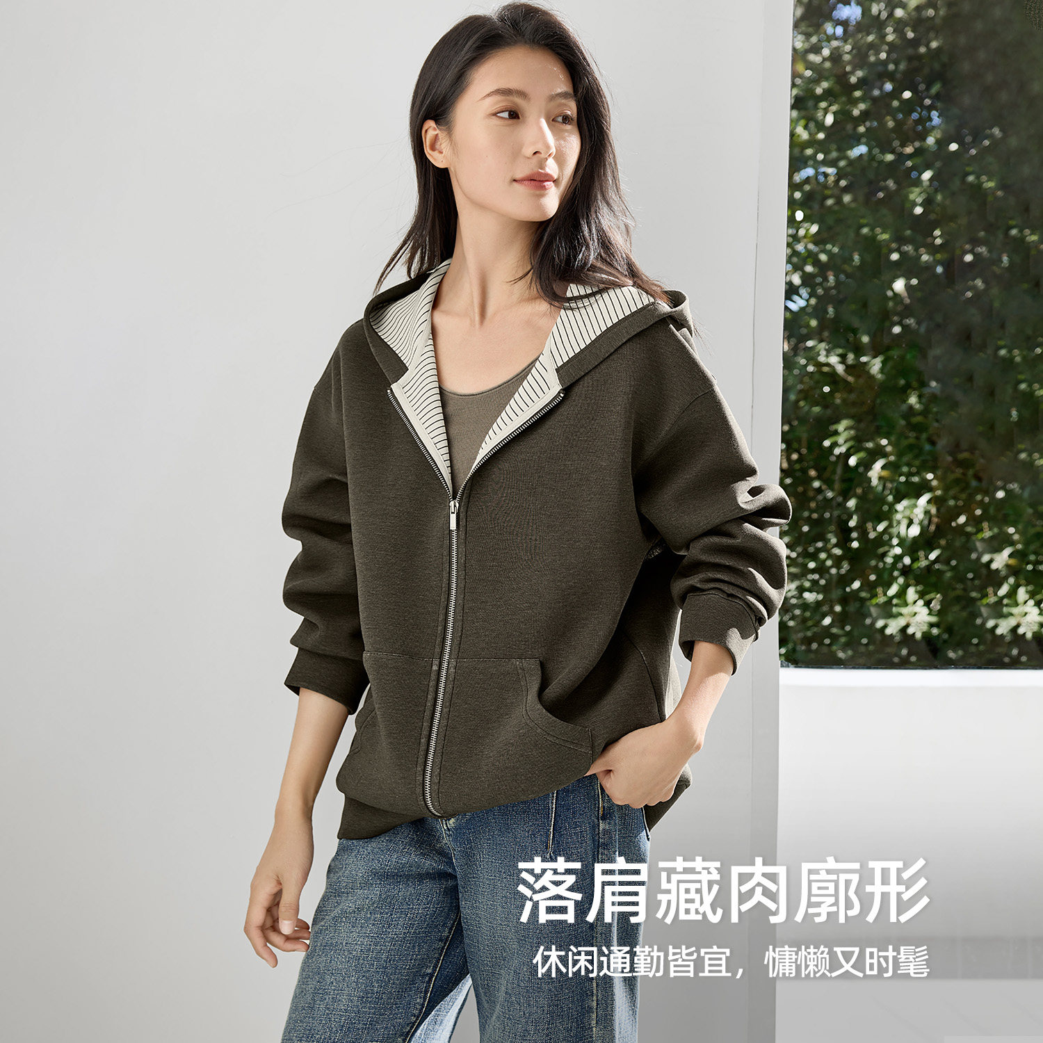 IHIMI海谧轻复古条纹连帽卫衣外套女款春季新款宽松显瘦休闲上衣