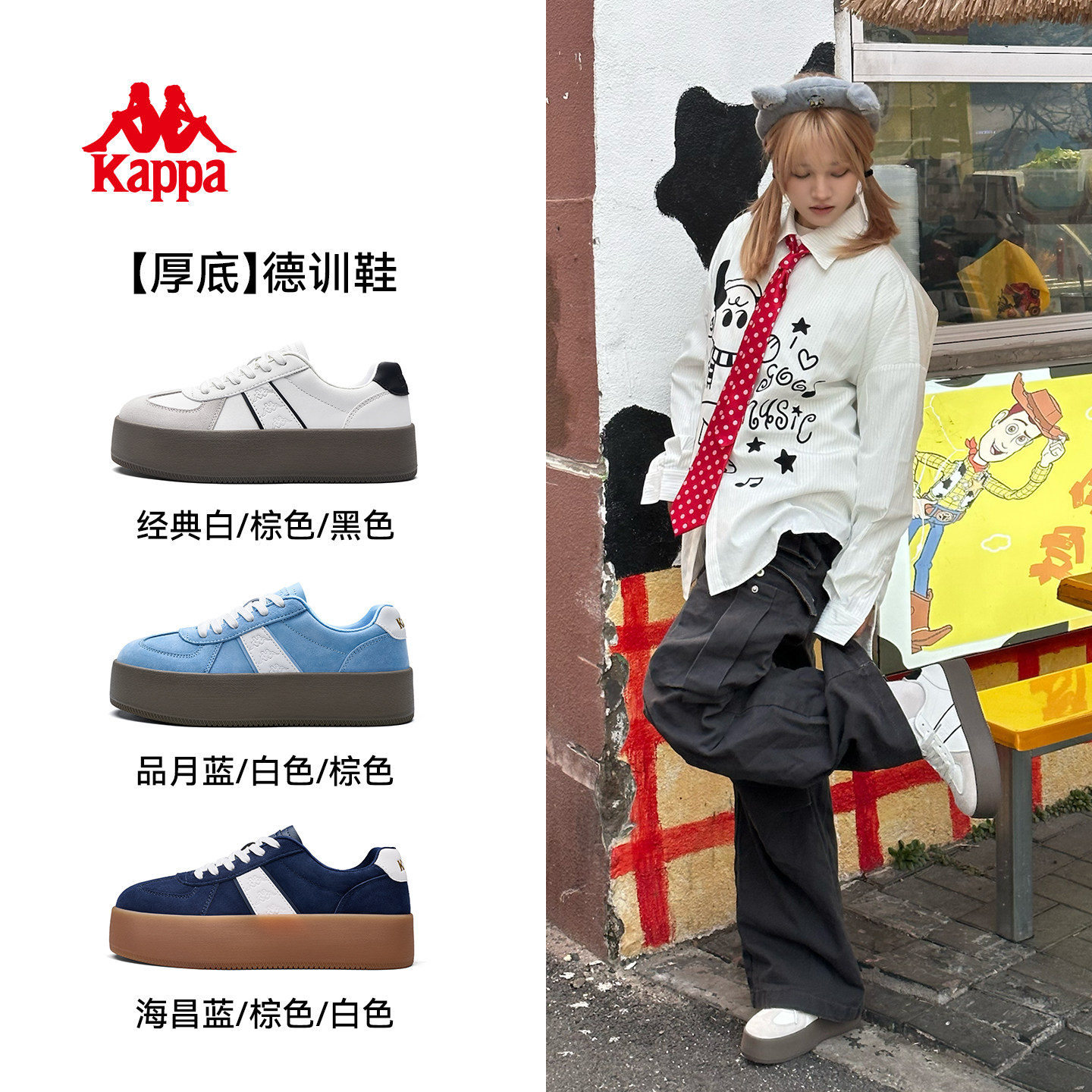 Kappa女鞋厚底德训鞋女款2026新款春季白色板鞋休闲鞋子女运动鞋