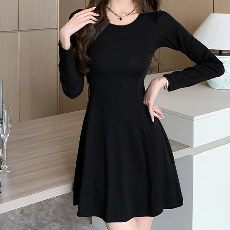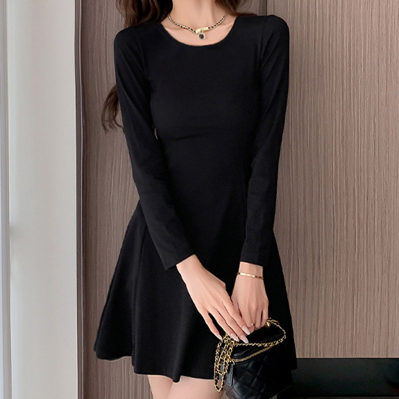 黑色连衣裙女秋冬季短款赫本风长袖裙子冬装特别漂亮高级修身新款