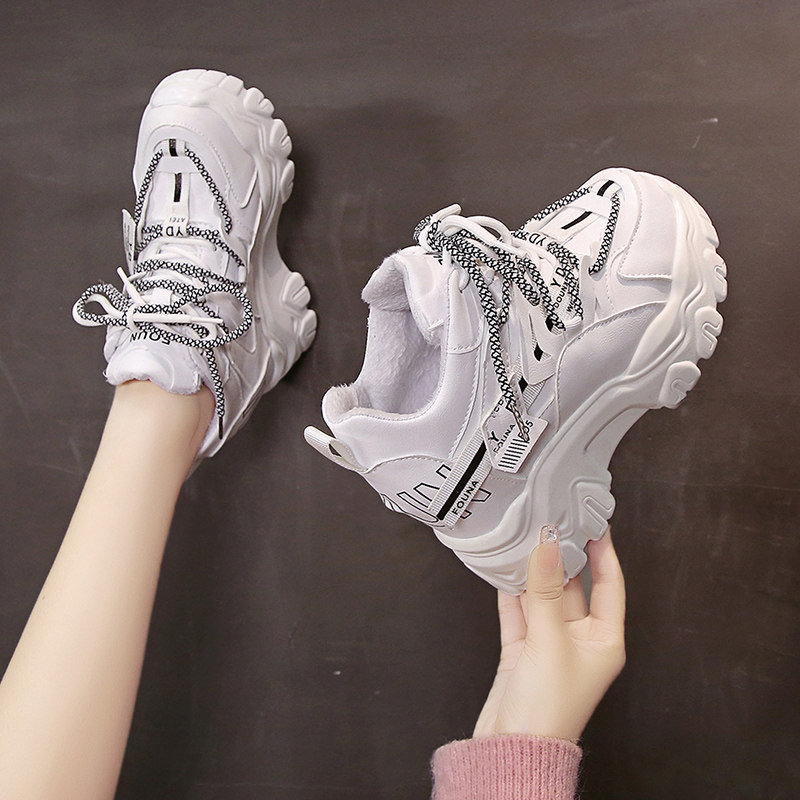 白色老爹鞋子女秋冬加绒小个子2024新款爆款内增高女鞋厚底运动鞋