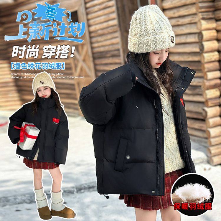 女童羽绒服冬季2025新款初中生女孩冬洋气加厚外套女大童冬装棉袄