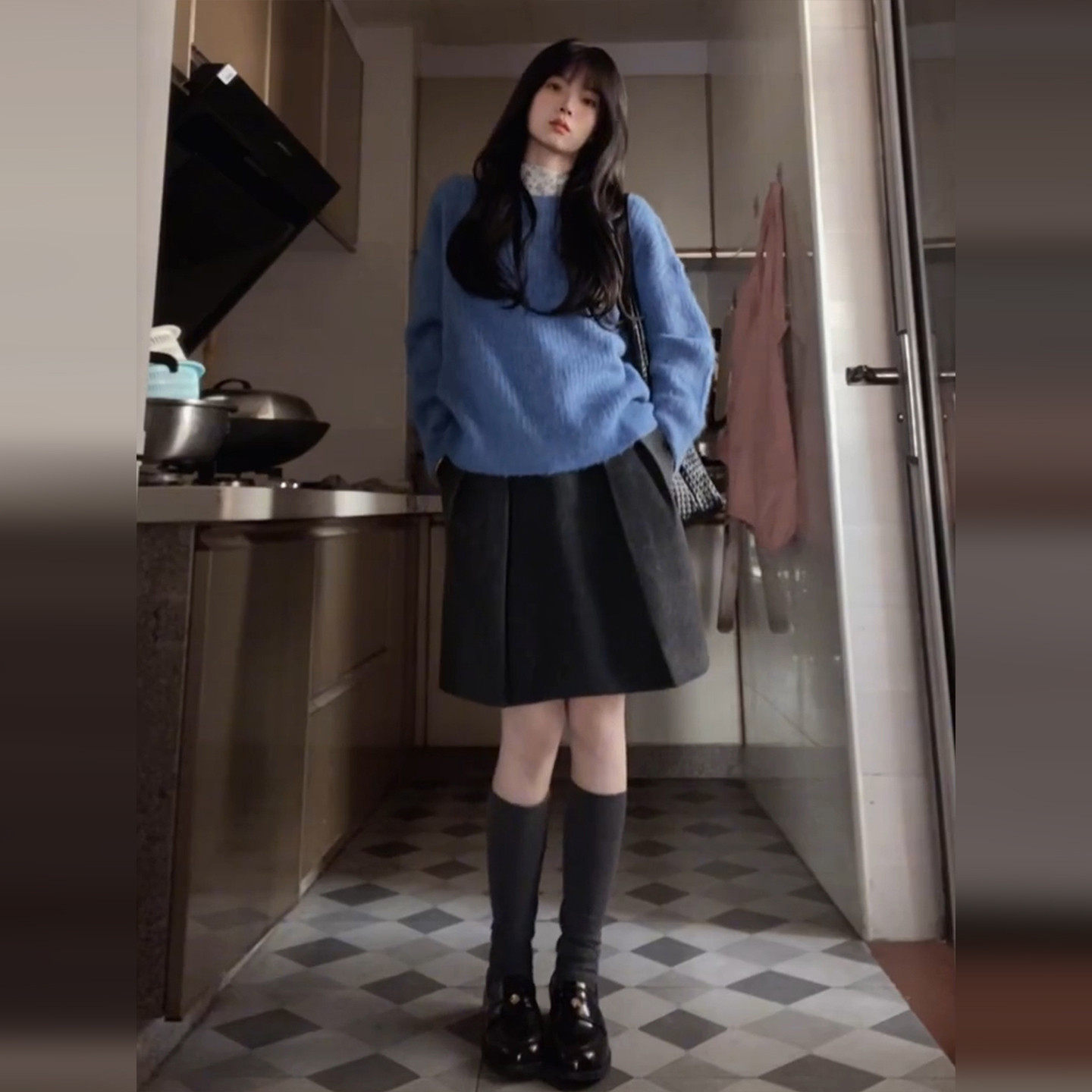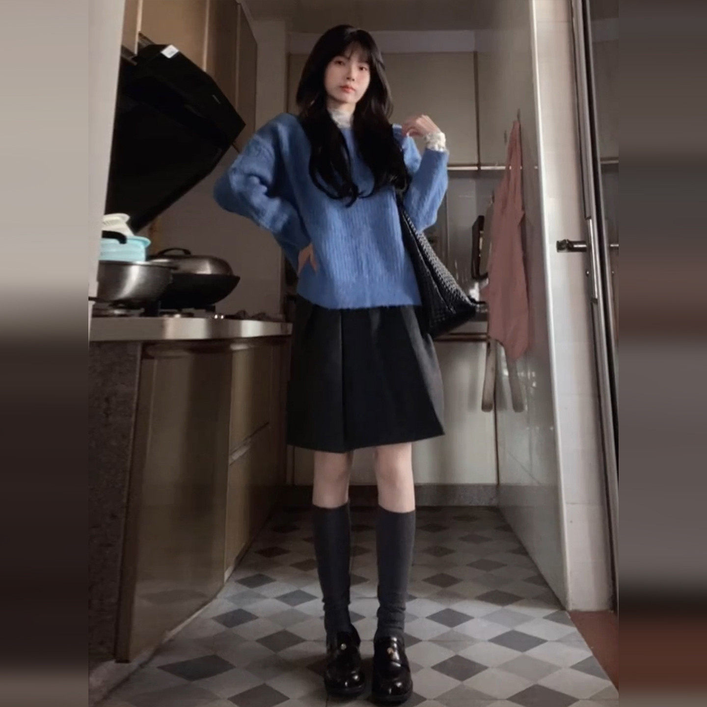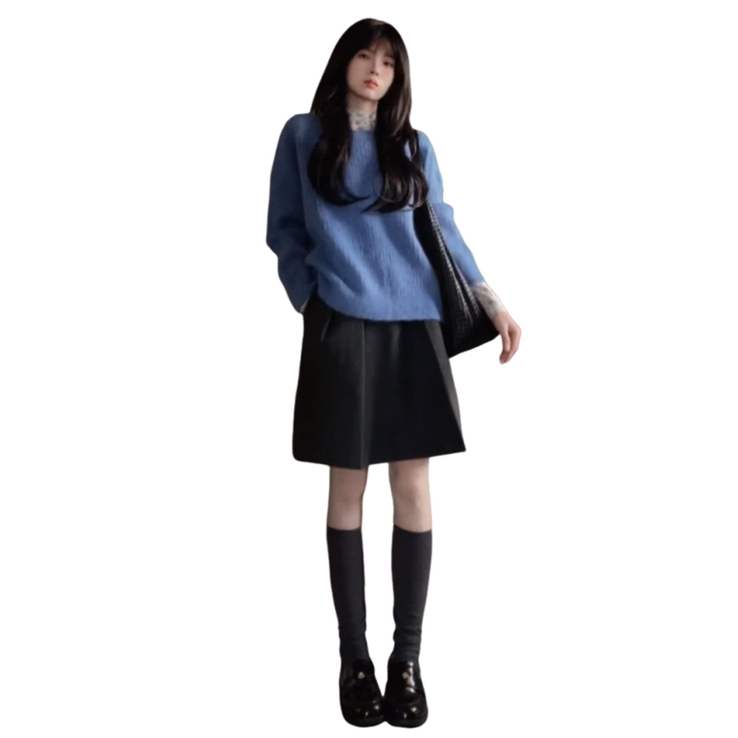 韩系温柔风蓝色针织叠穿套装连衣裙子女26春季气质显瘦穿搭一整套