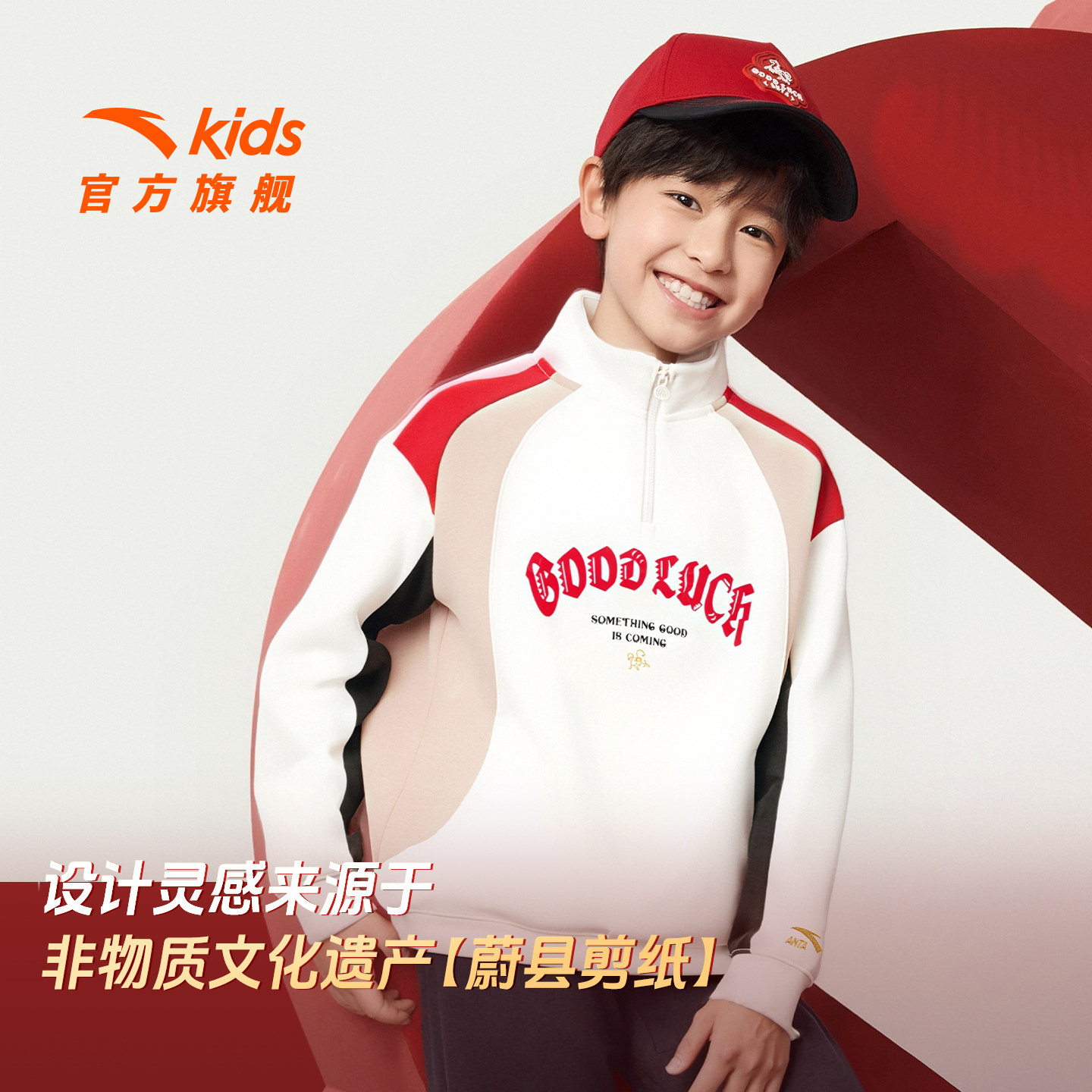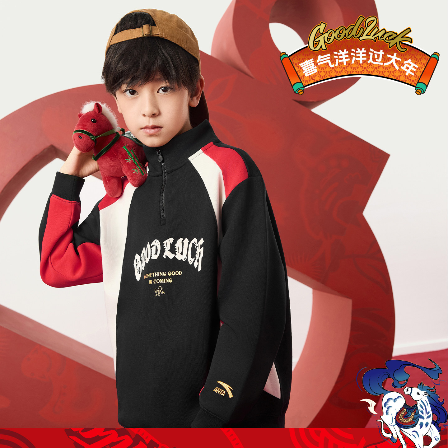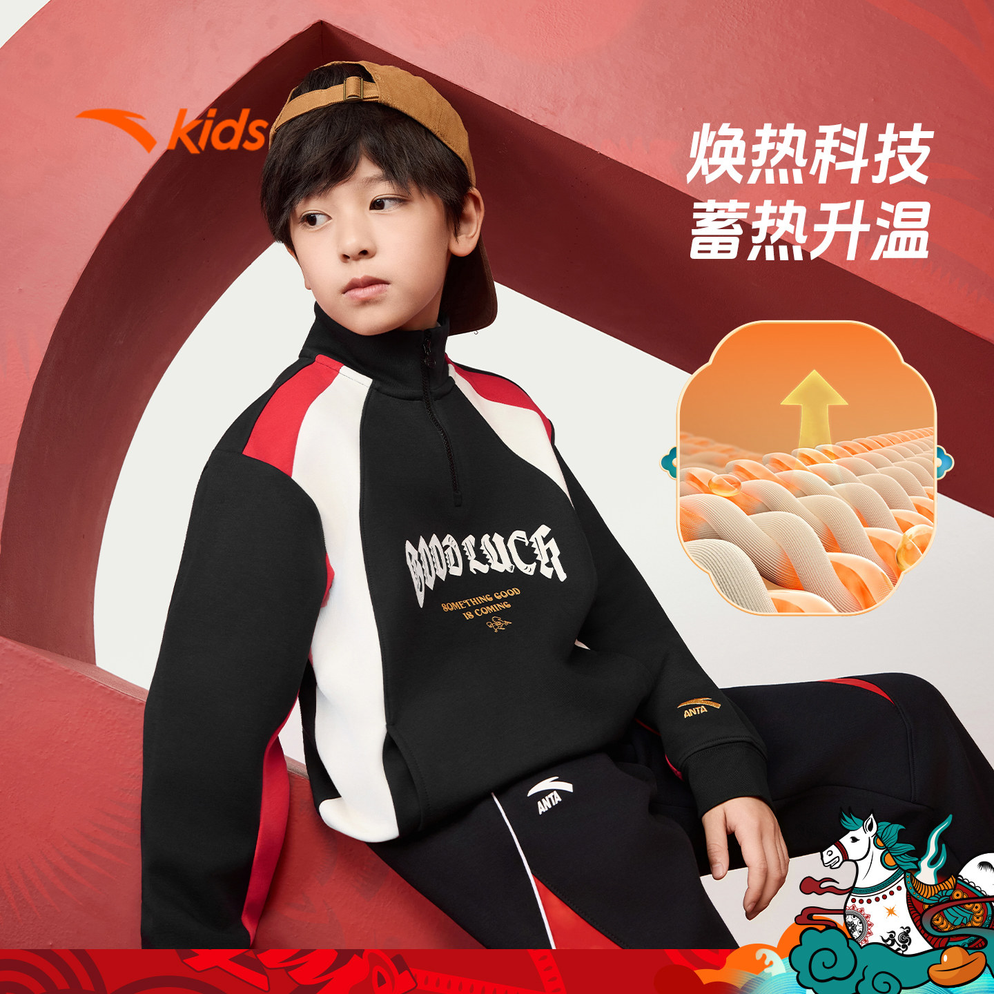 【新年马年】安踏儿童卫衣男童套头2026年新款潮酷拉链红色卫衣