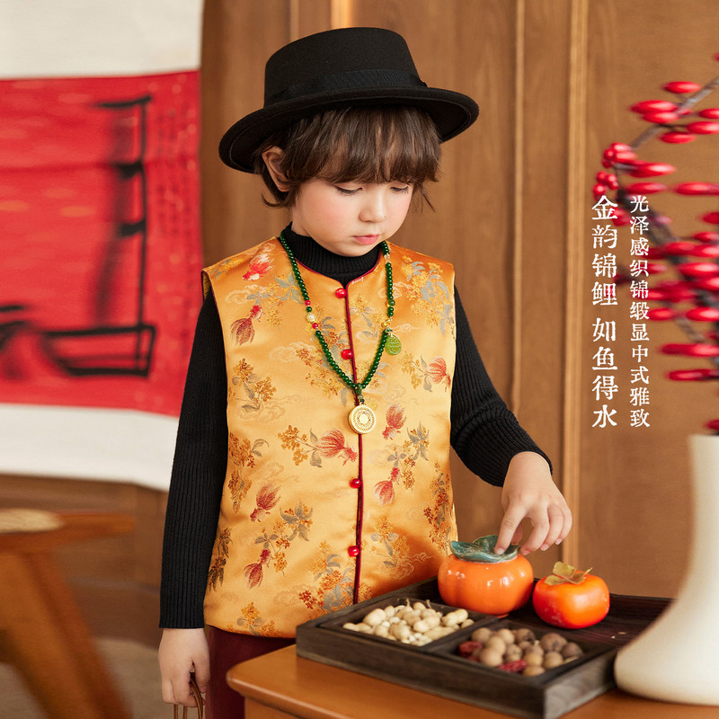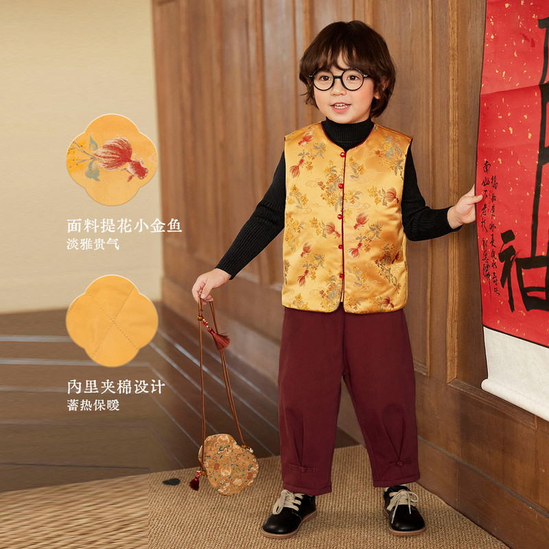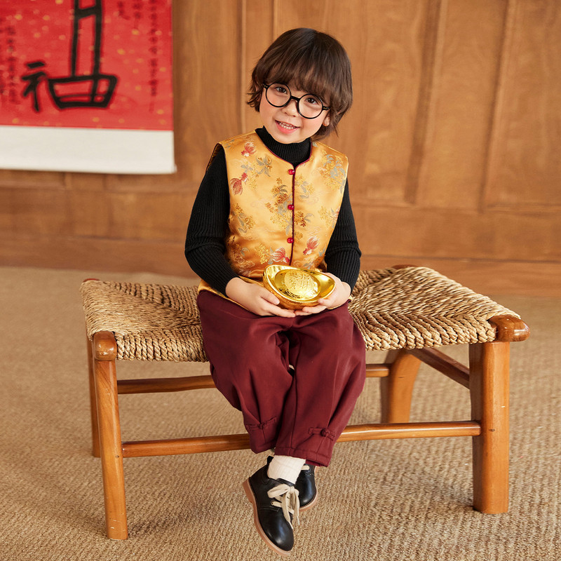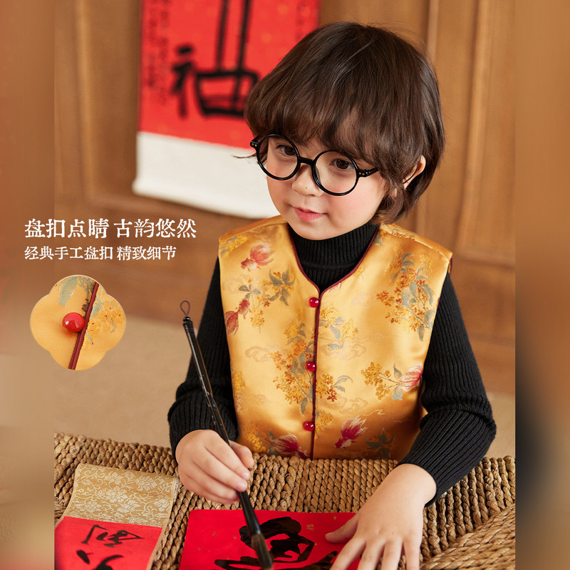 小o宝okids男童 新中式儿童唐装马甲过年新年拜年服2026新款国风