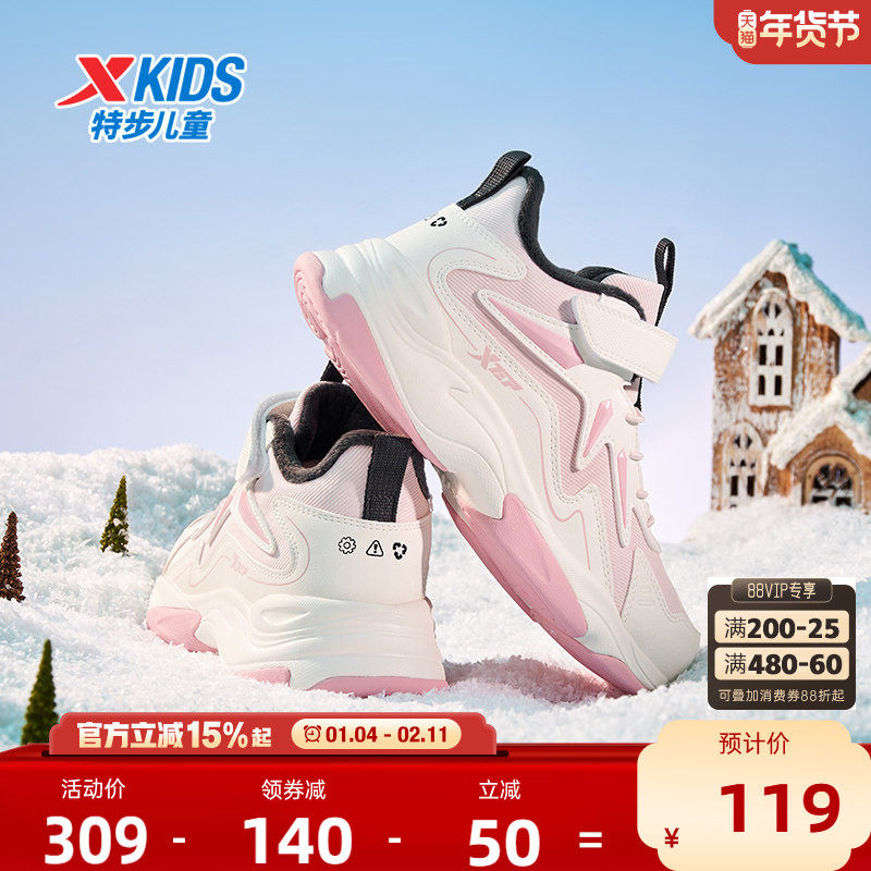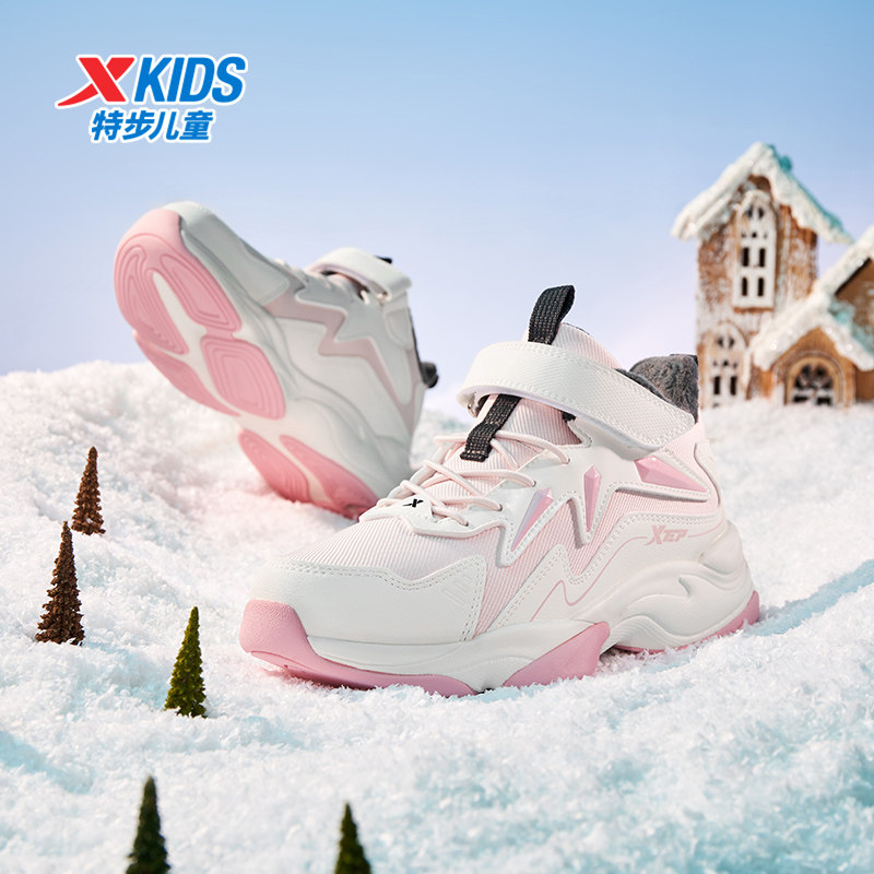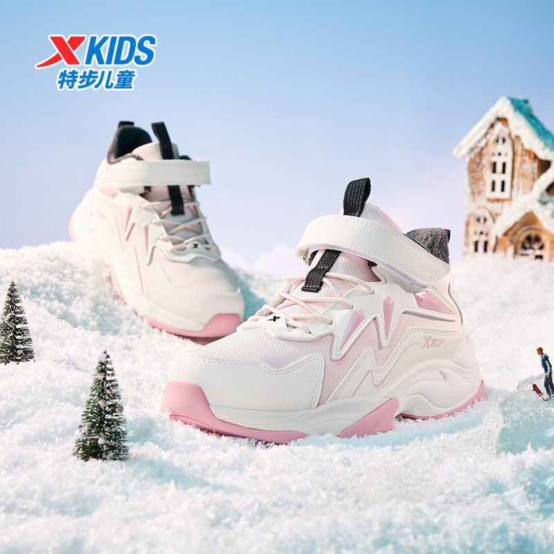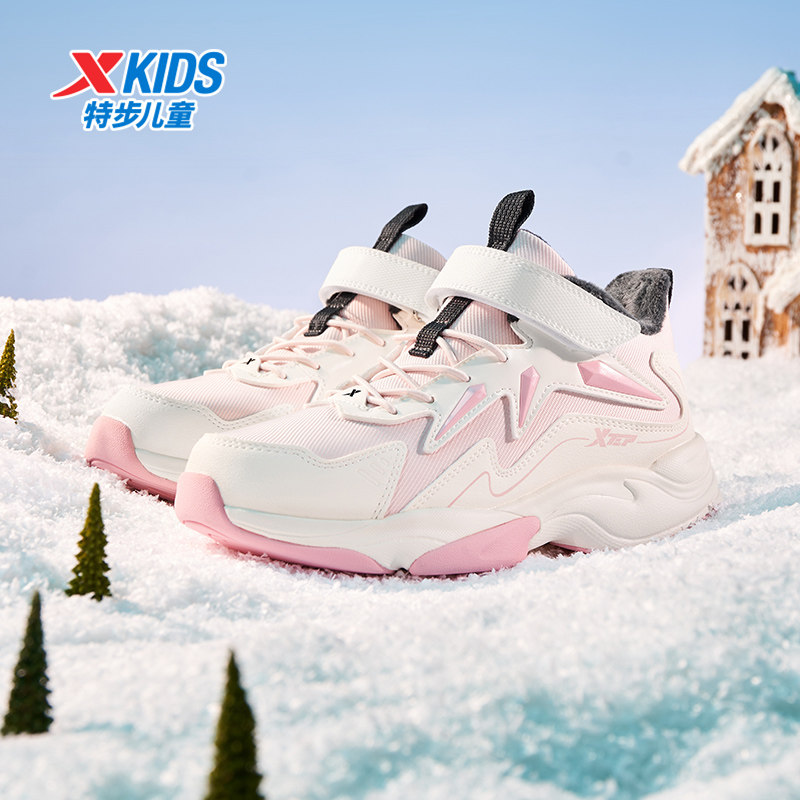 特步童鞋冬季新款中大童女童休闲鞋儿童运动防滑二棉加绒保暖棉鞋
