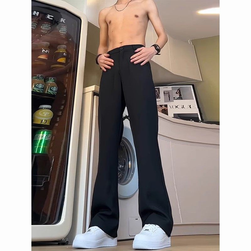 黑色直筒西裤垂坠感高级感弯刀微喇裤子男款春夏季加长休闲西装裤