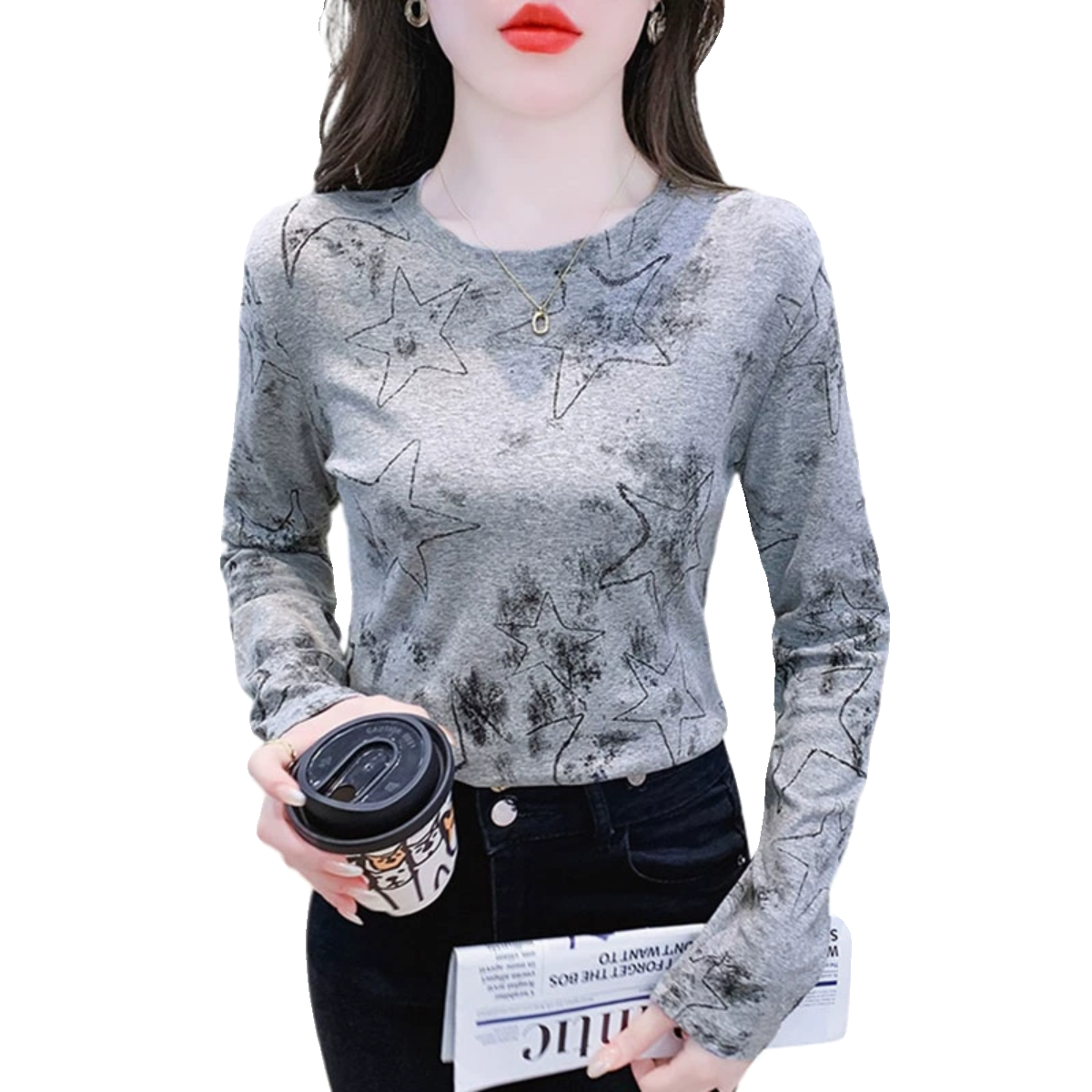 纯棉长袖打底衫时尚印花女装春装2026新款修身t恤衫洋气别致上衣