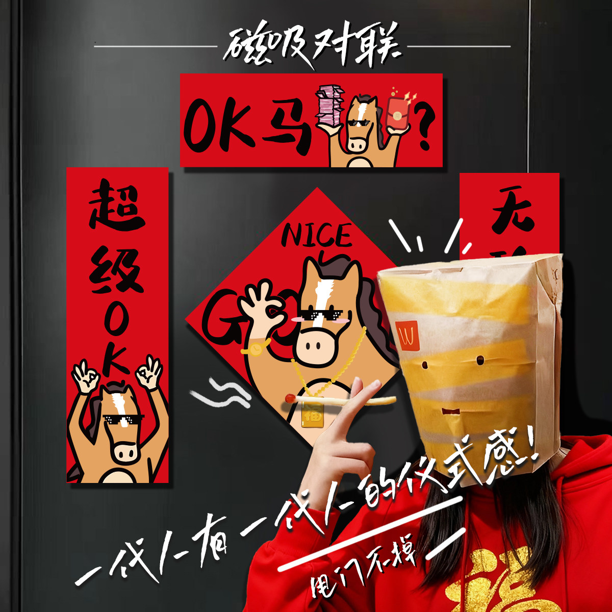 磁吸对联2026马年创意风卡通家用新年新款氛围入户门贴春联全磁