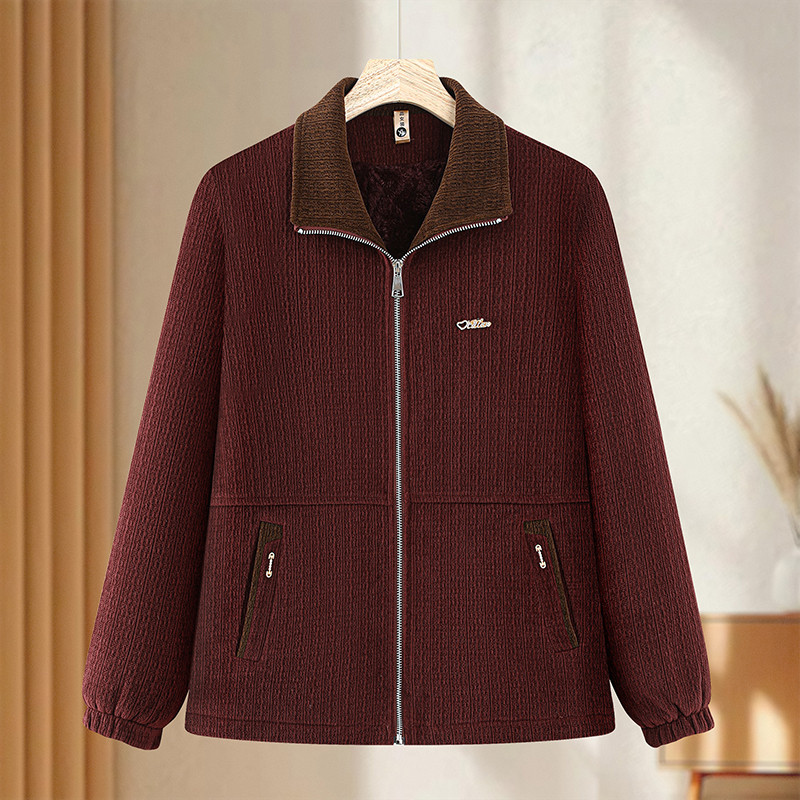 中老年妈妈秋冬新款加绒加厚外套休闲宽松夹克中老年洋气上衣