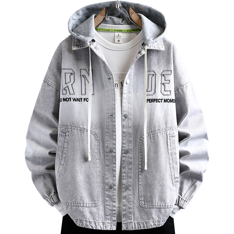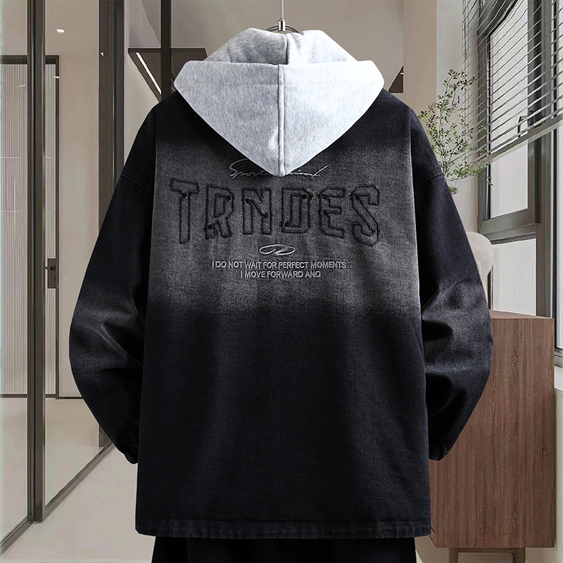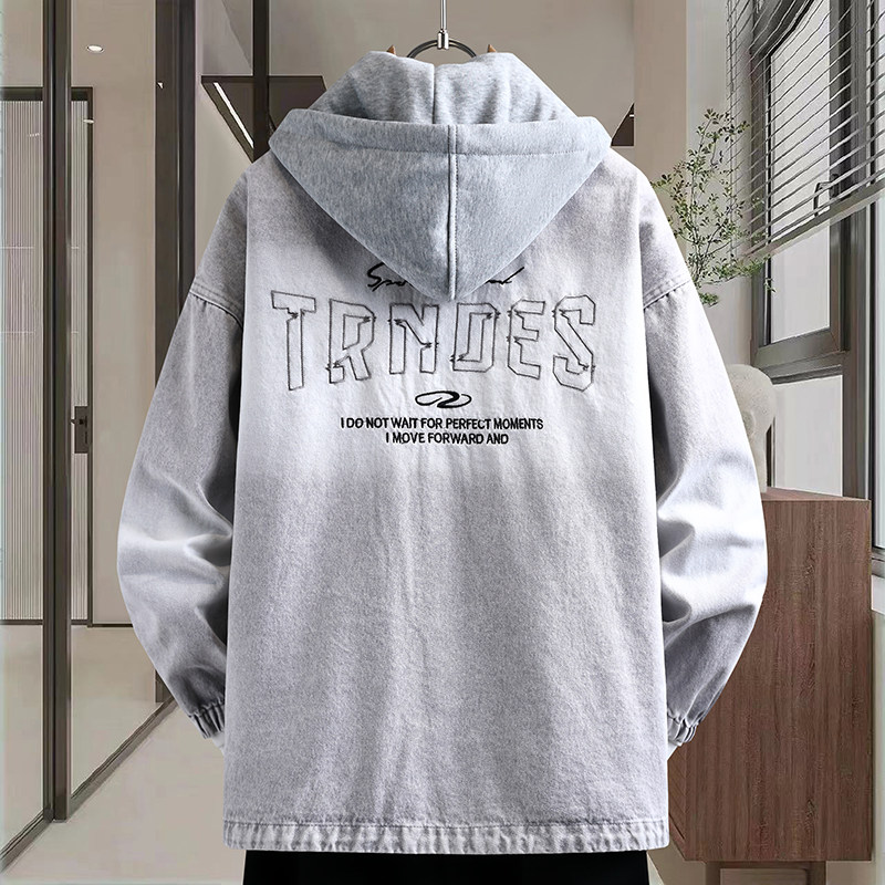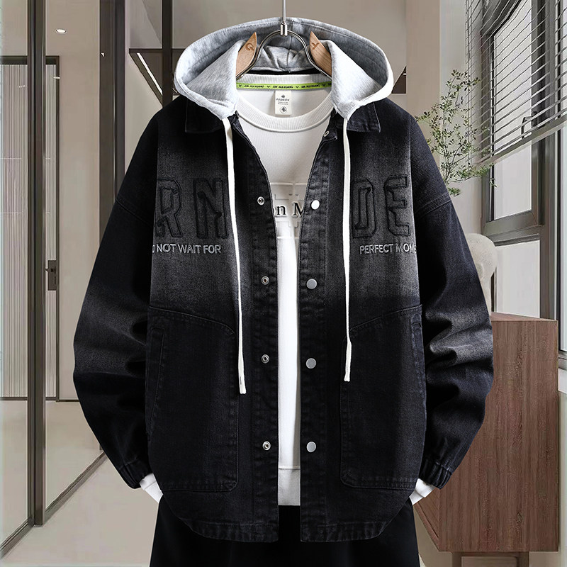 青少年水洗牛仔外套男生春秋季新款大学生夹克男装潮牌连帽上衣服
