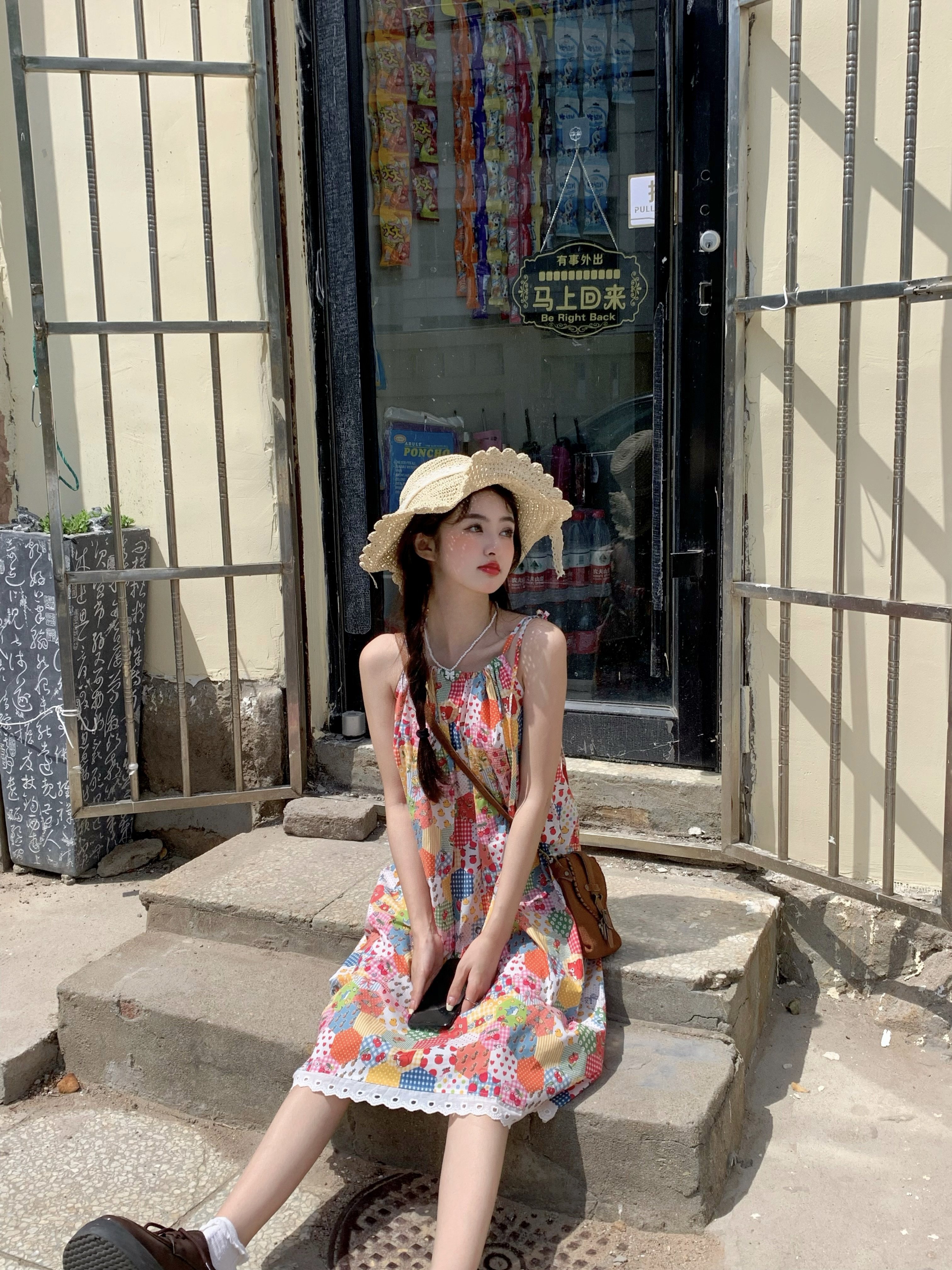 小个子甜美吊带连衣裙女夏季小众设计高级感度假风宽松休闲长裙子