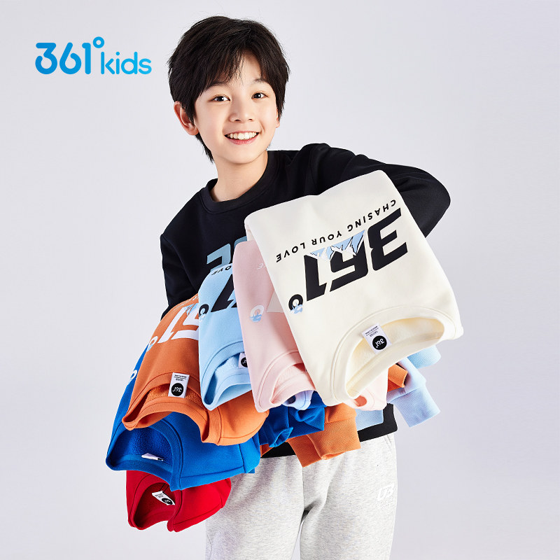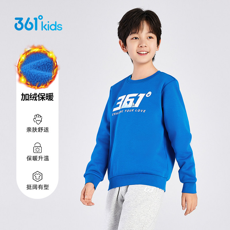 361°童装男女童加厚加绒套头卫衣2025冬季新款中大童保暖上衣