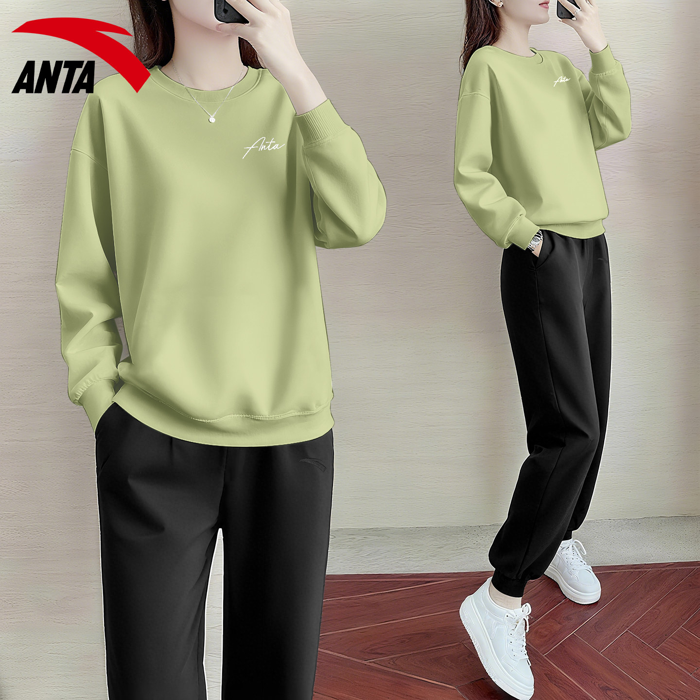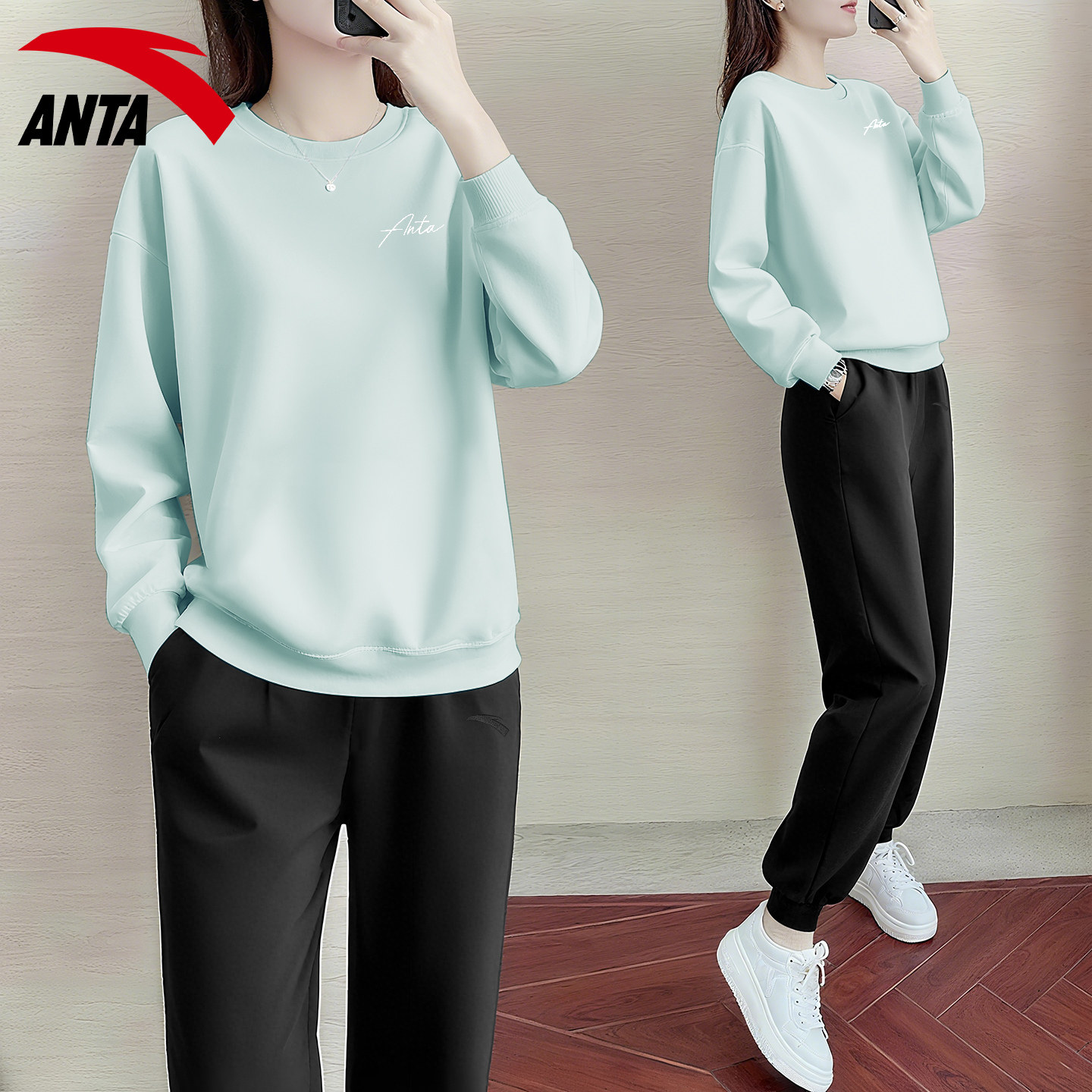 安踏运动套装女款粉色时髦卫衣卫裤跑步休闲官网旗舰减龄洋气一套