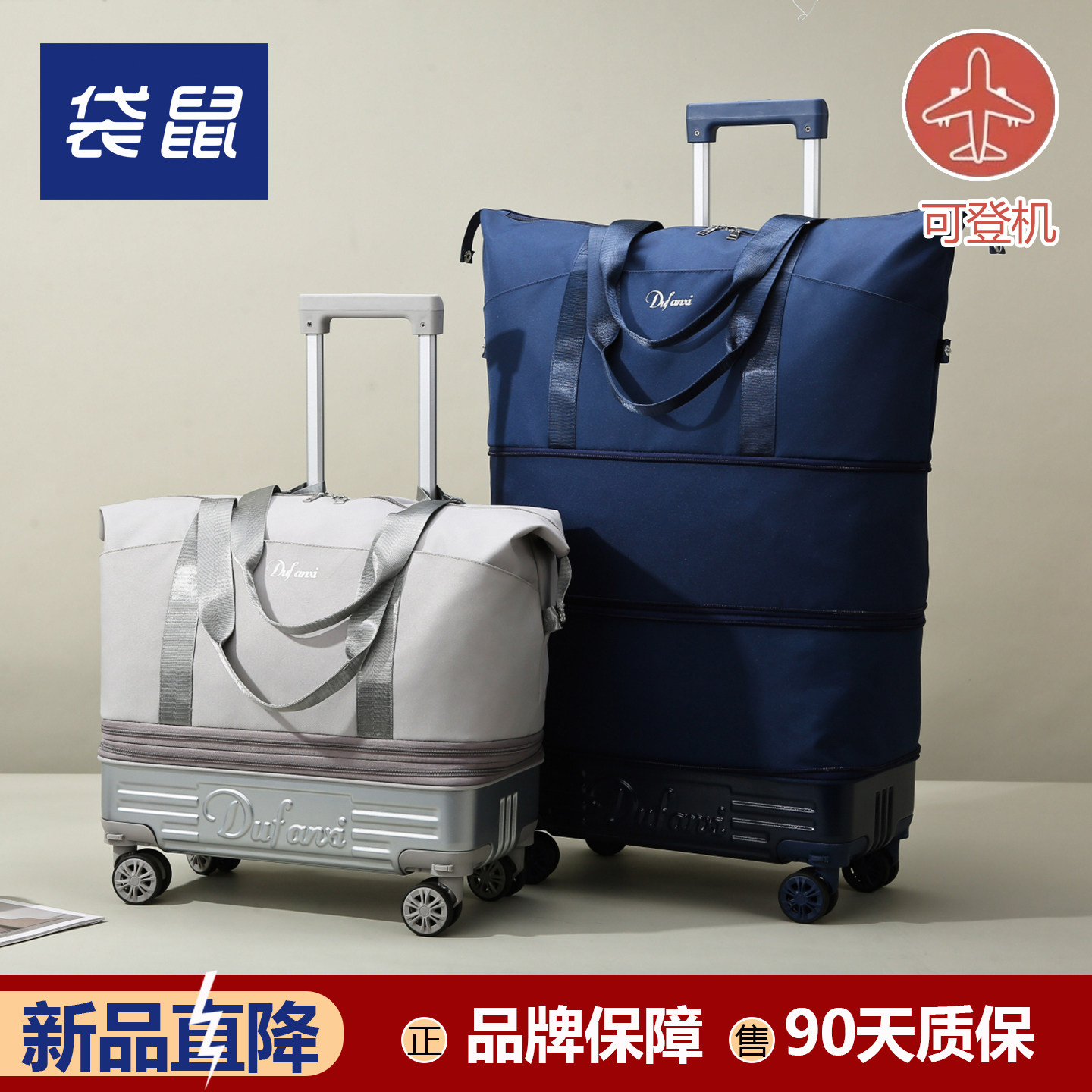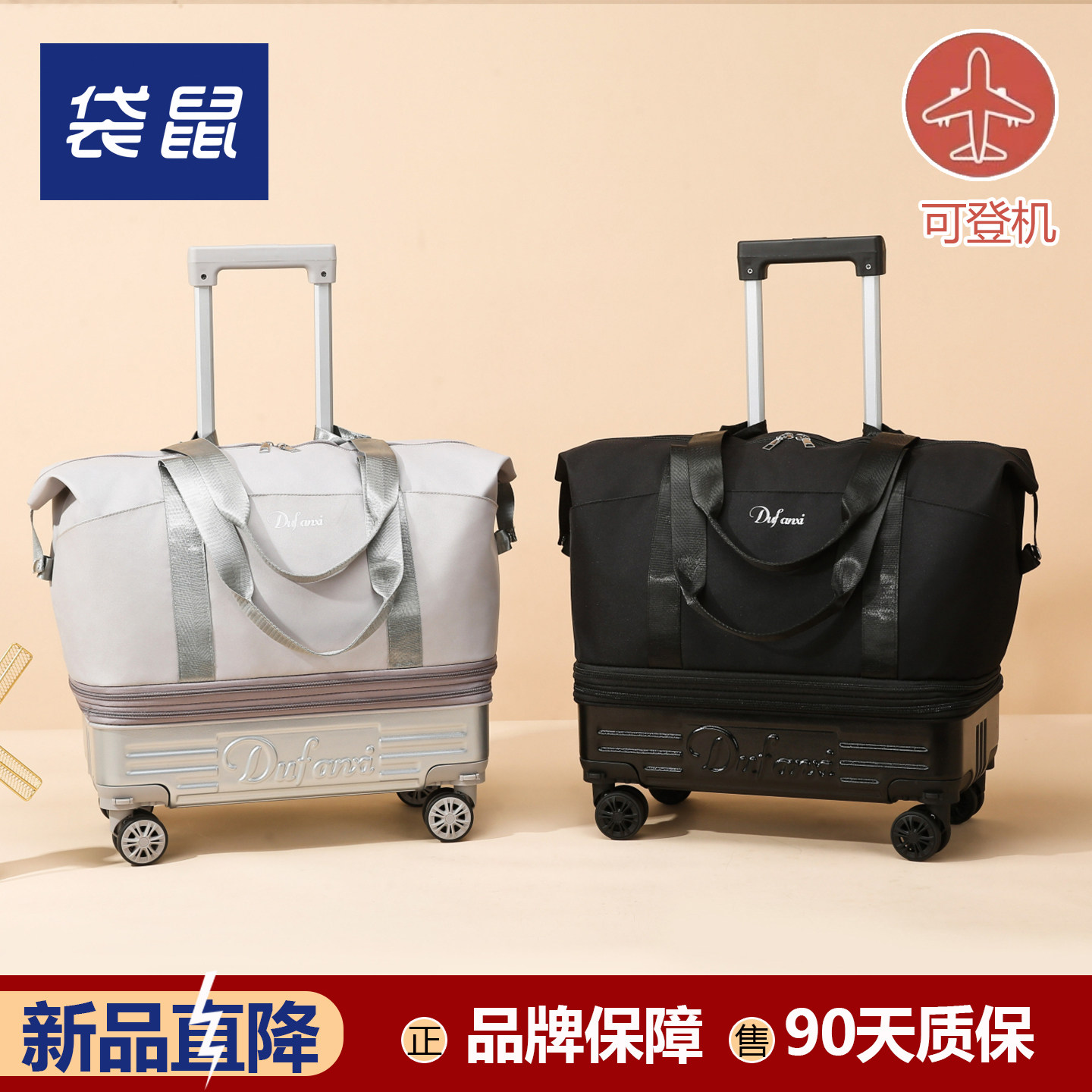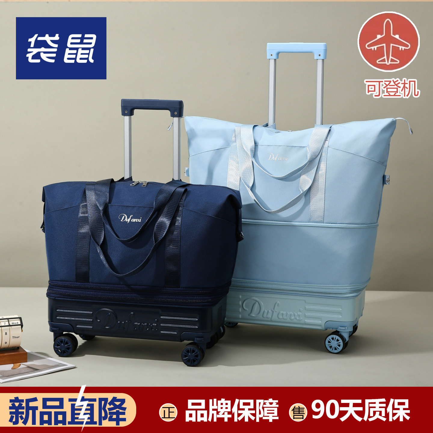 袋鼠旅行包女士便携拉杆式行李包带轮子大容量可上飞机行李收纳袋