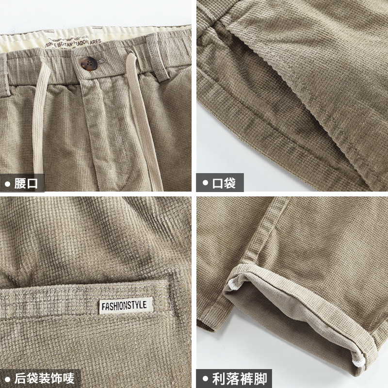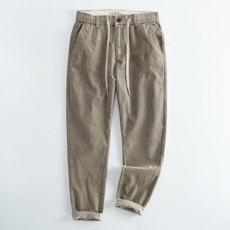 汉絮冬季新品灯芯绒休闲长裤男款时尚复古微锥裤子百搭男装直筒裤