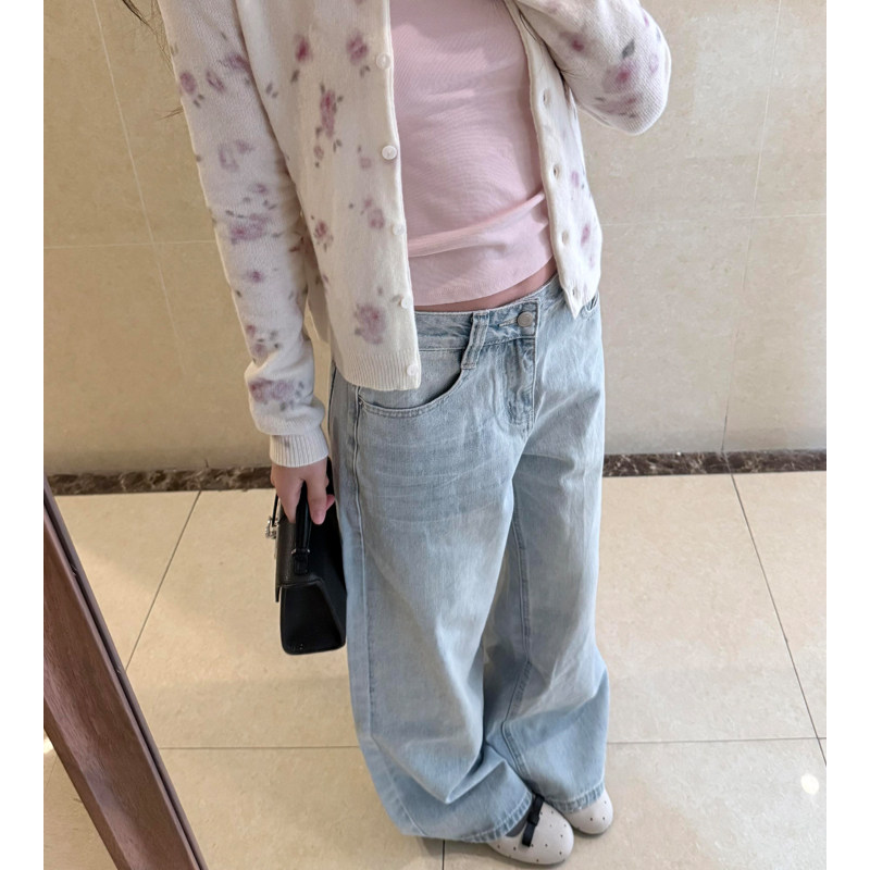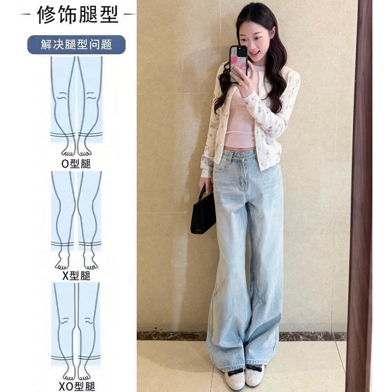 浅蓝色高腰水洗阔腿牛仔裤女2026春季新款宽松显瘦垂感直筒拖地裤