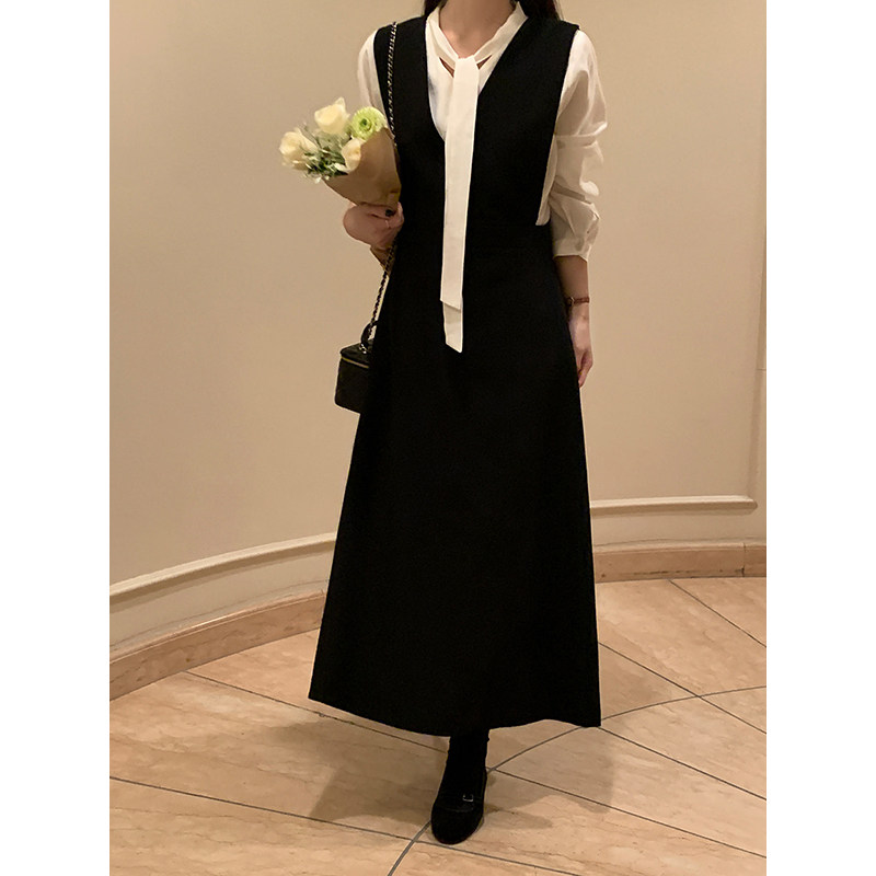 连衣裙2025新款女春秋轻奢高级感无袖气质通勤收腰显瘦长款裙子