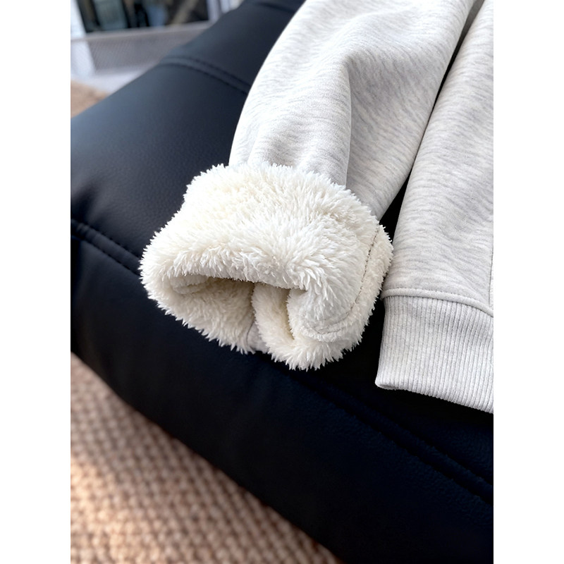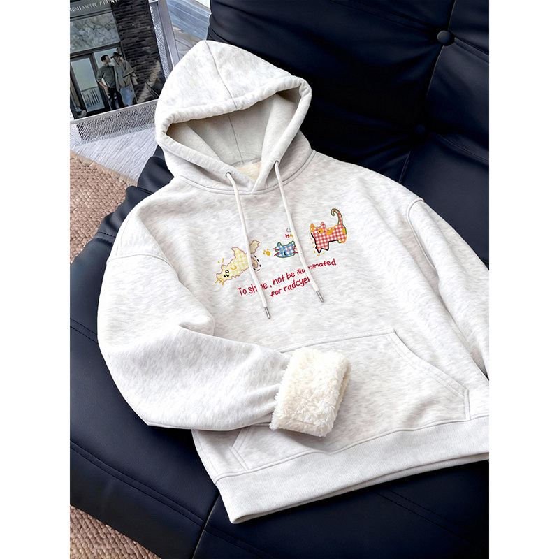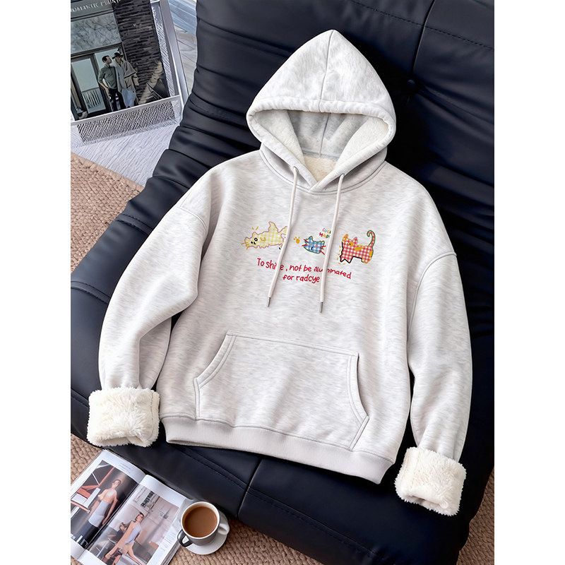 羊羔绒灰色加绒卫衣女款连帽加厚保暖宽松大码女装宽松慵懒风上衣
