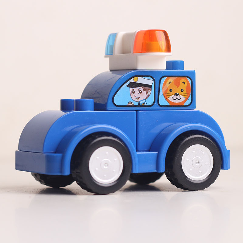 大颗粒积木拼装工程车儿童益智玩具百变小汽车男孩3-6岁小警车DIY